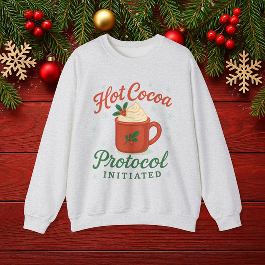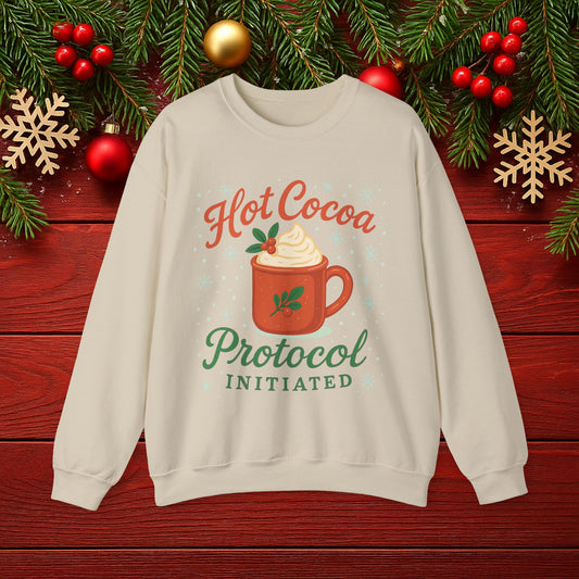 "Hot Cocoa Protocol Initiated" Holiday Crewneck