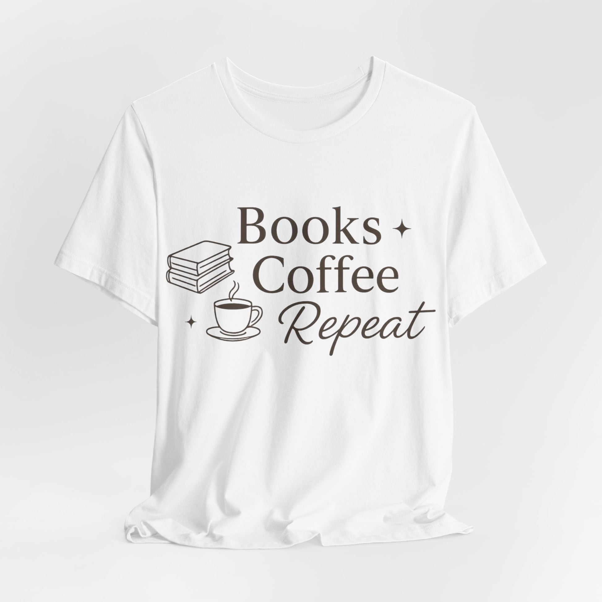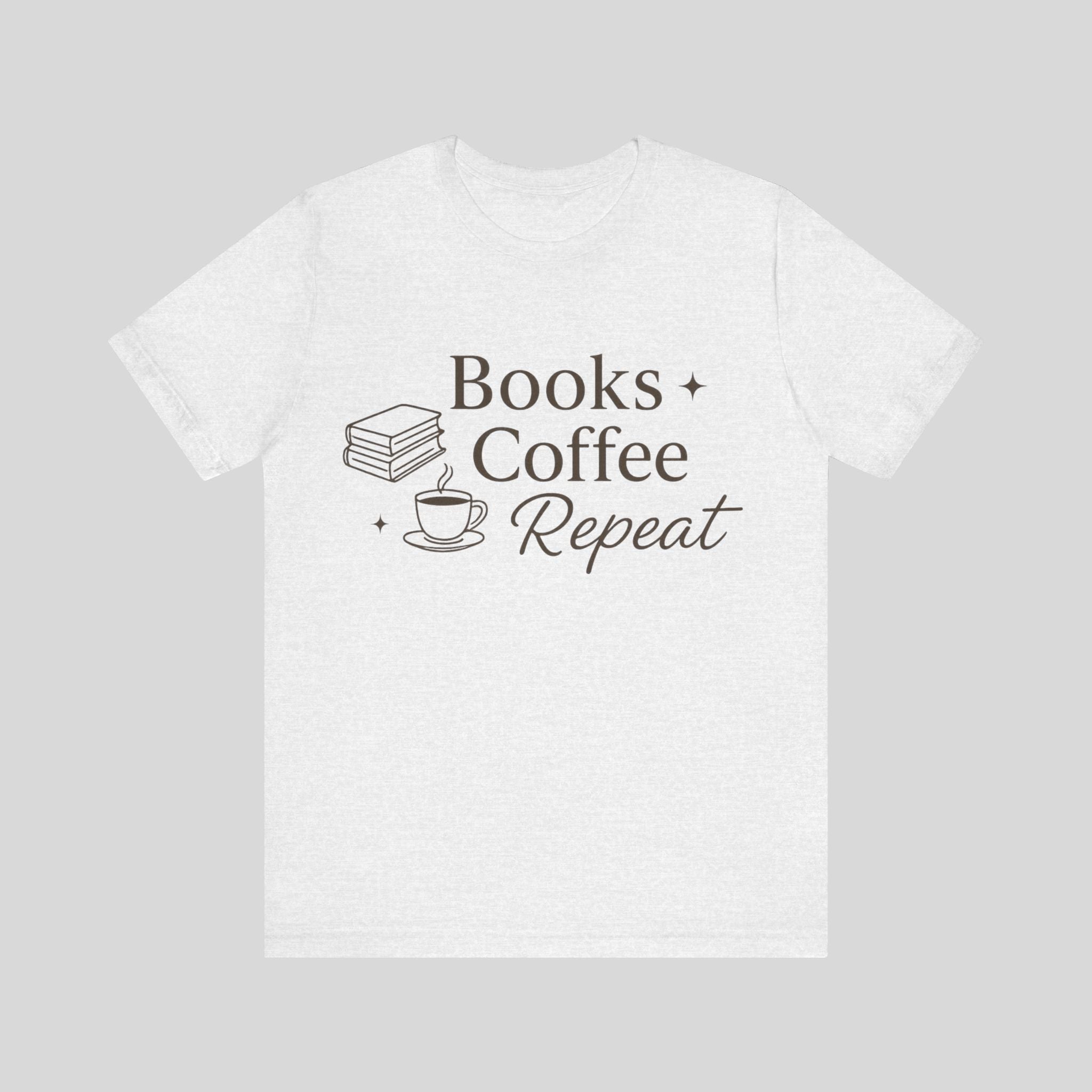 Books + Coffee Repeat Tee — Reader & Coffee Lover Graphic T-Shirt