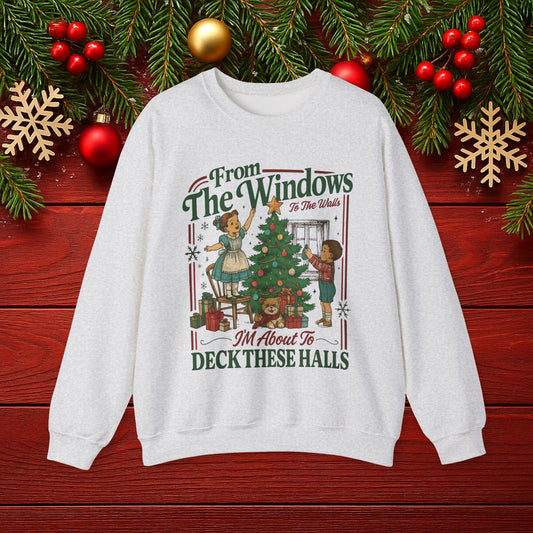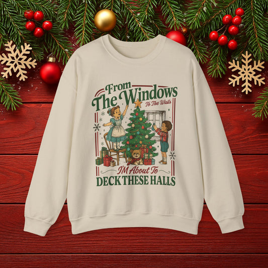 “From The Windows I’m About To Deck These Halls” Retro Holiday Pullover
