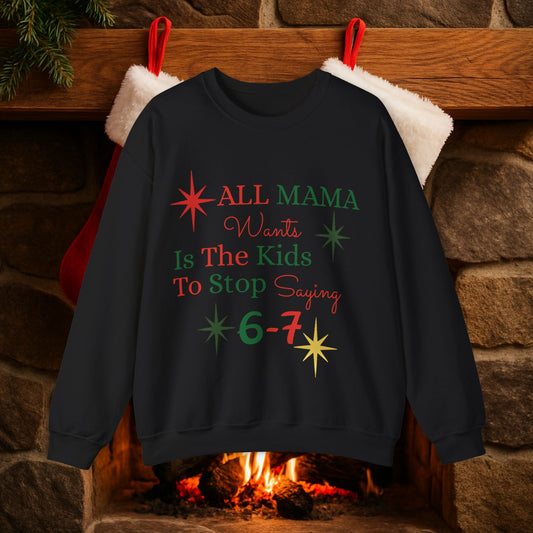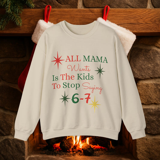 Crewneck Sweatshirt — "All Mama Wants Is The Kids To Stop Saying 6-7" Christmas Mom Sweatshirt