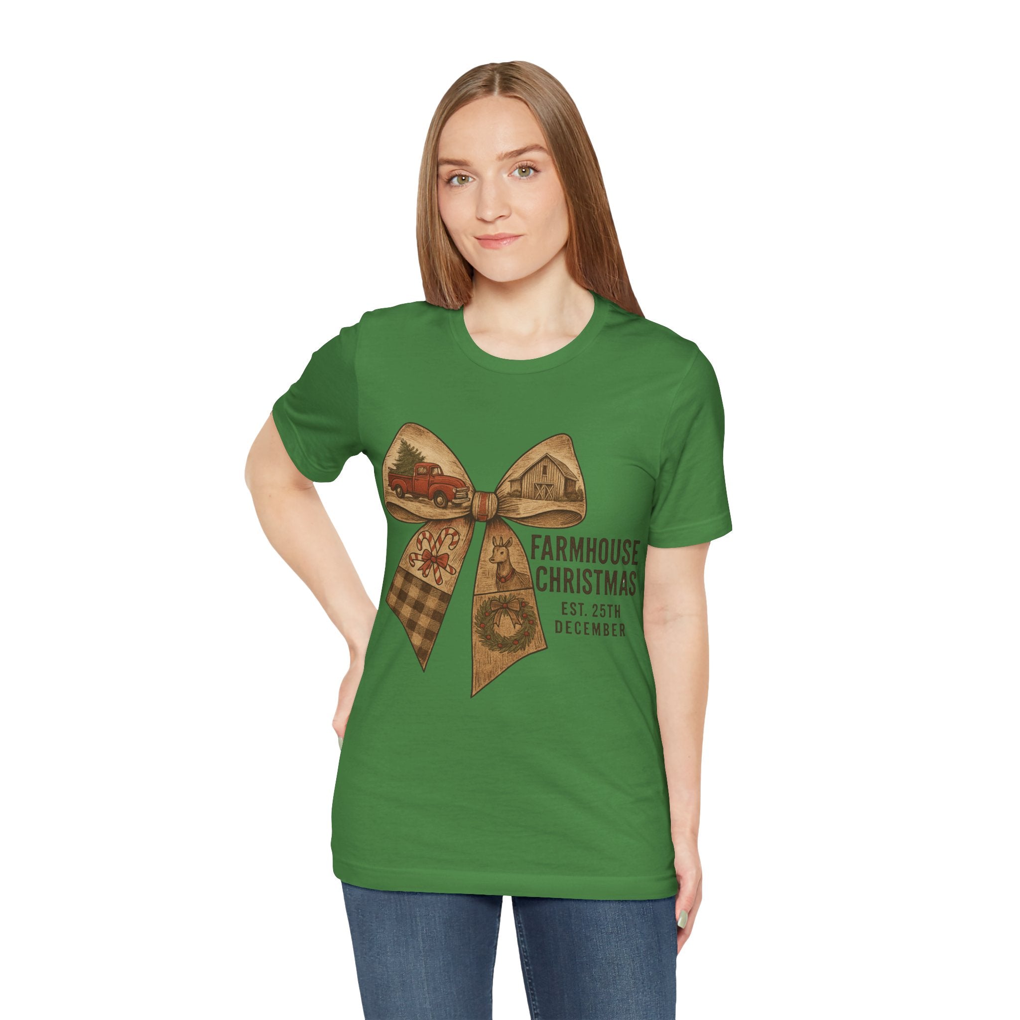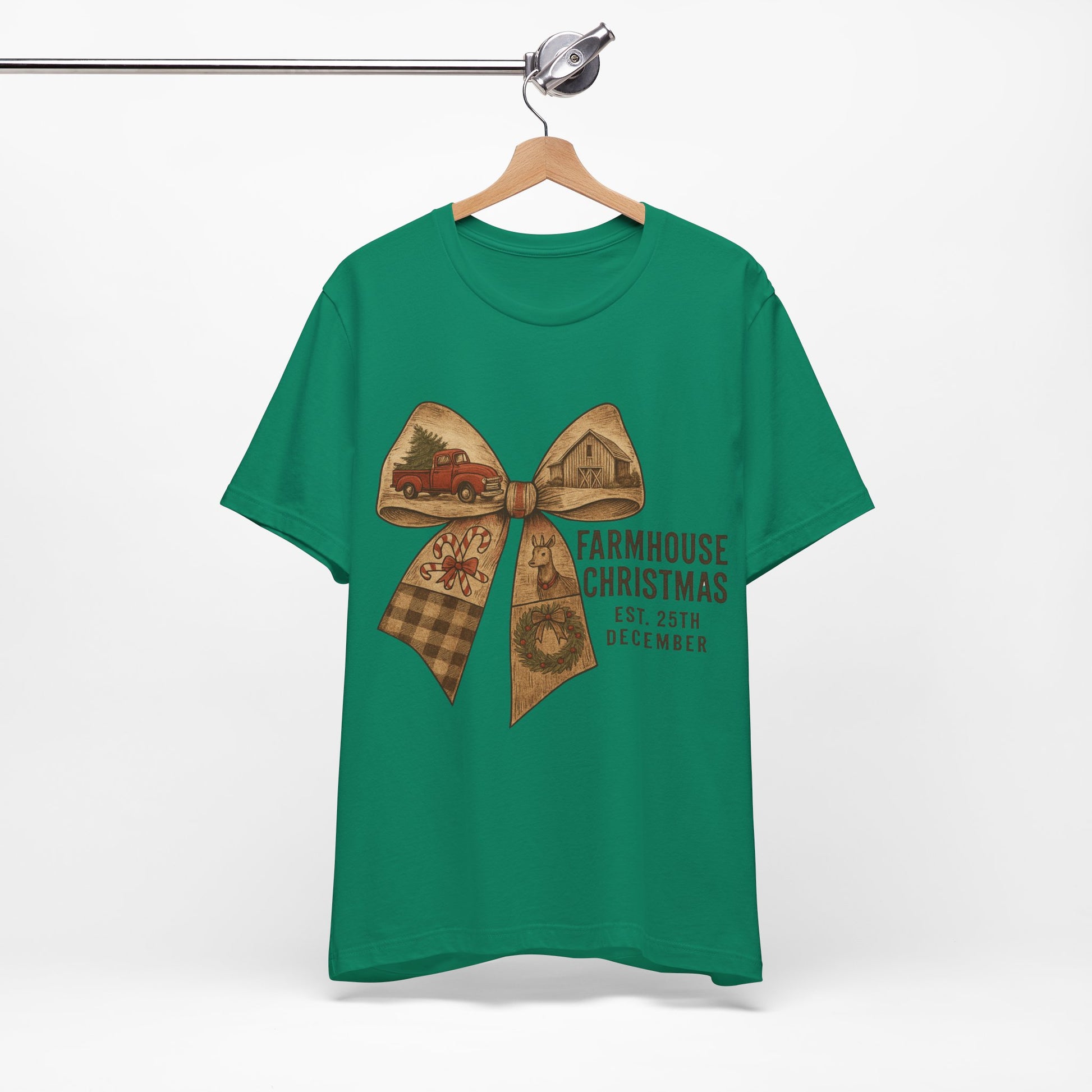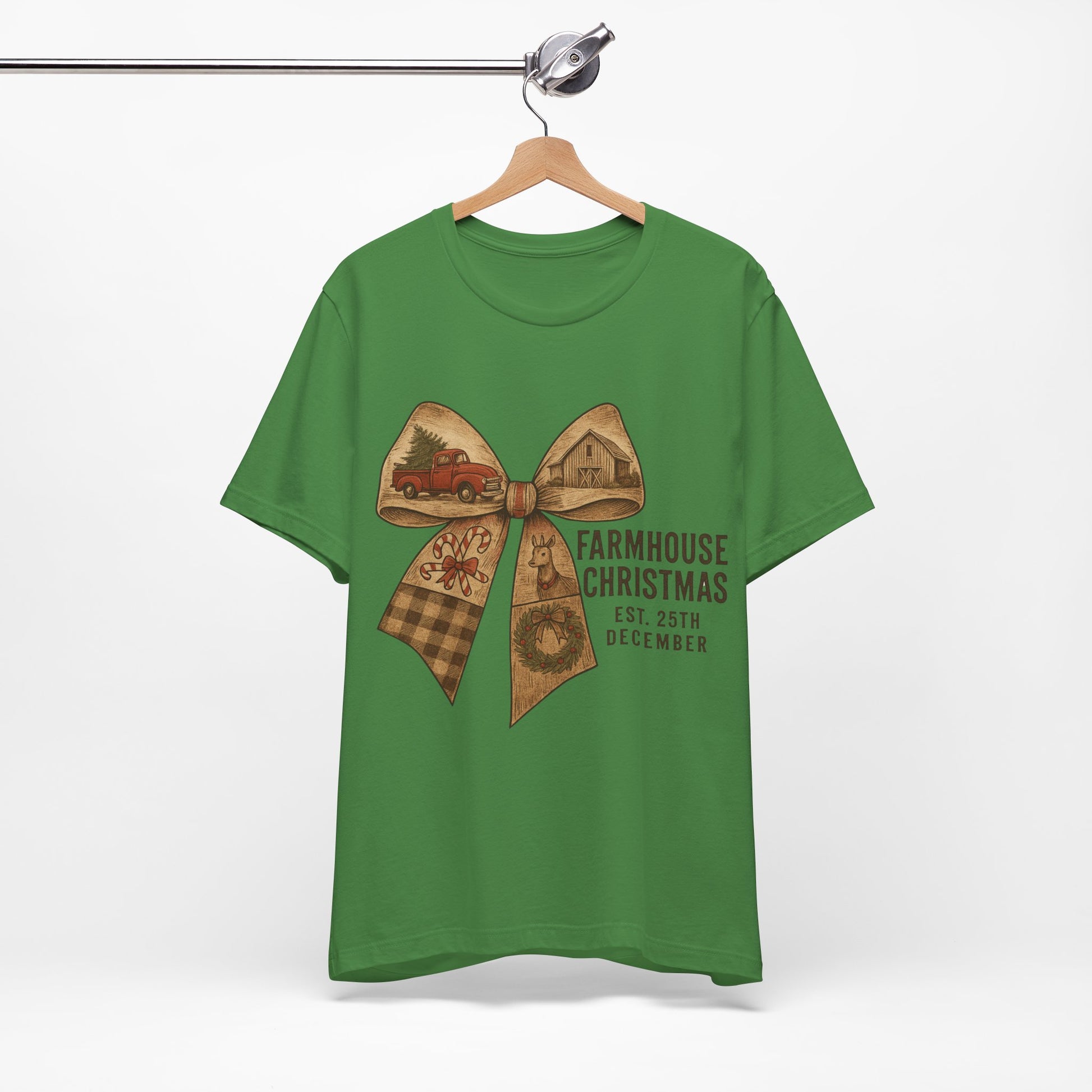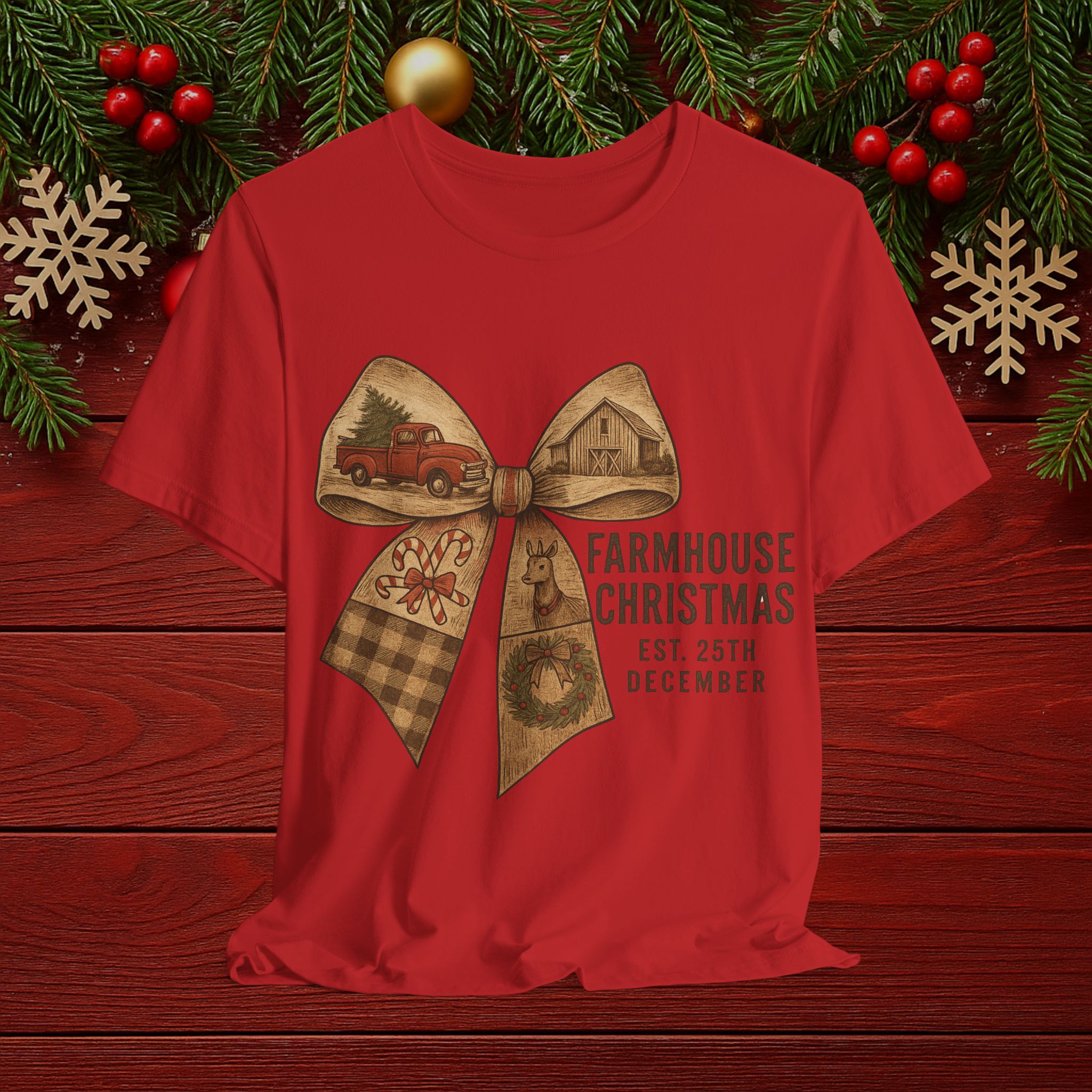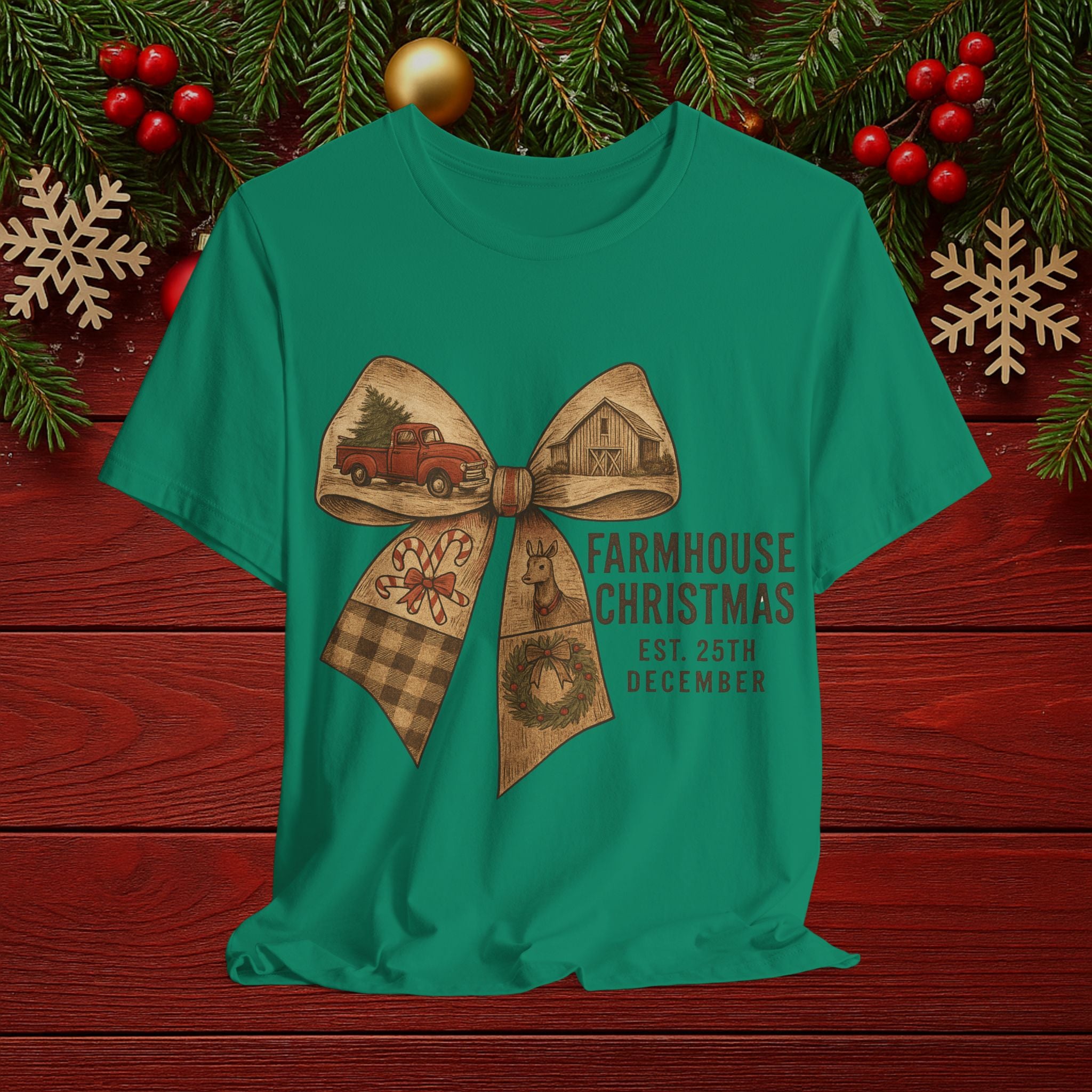 Farmhouse Christmas Tee – Rustic Bow 'Farmhouse Christmas EST. 25th December' Holiday Shirt
