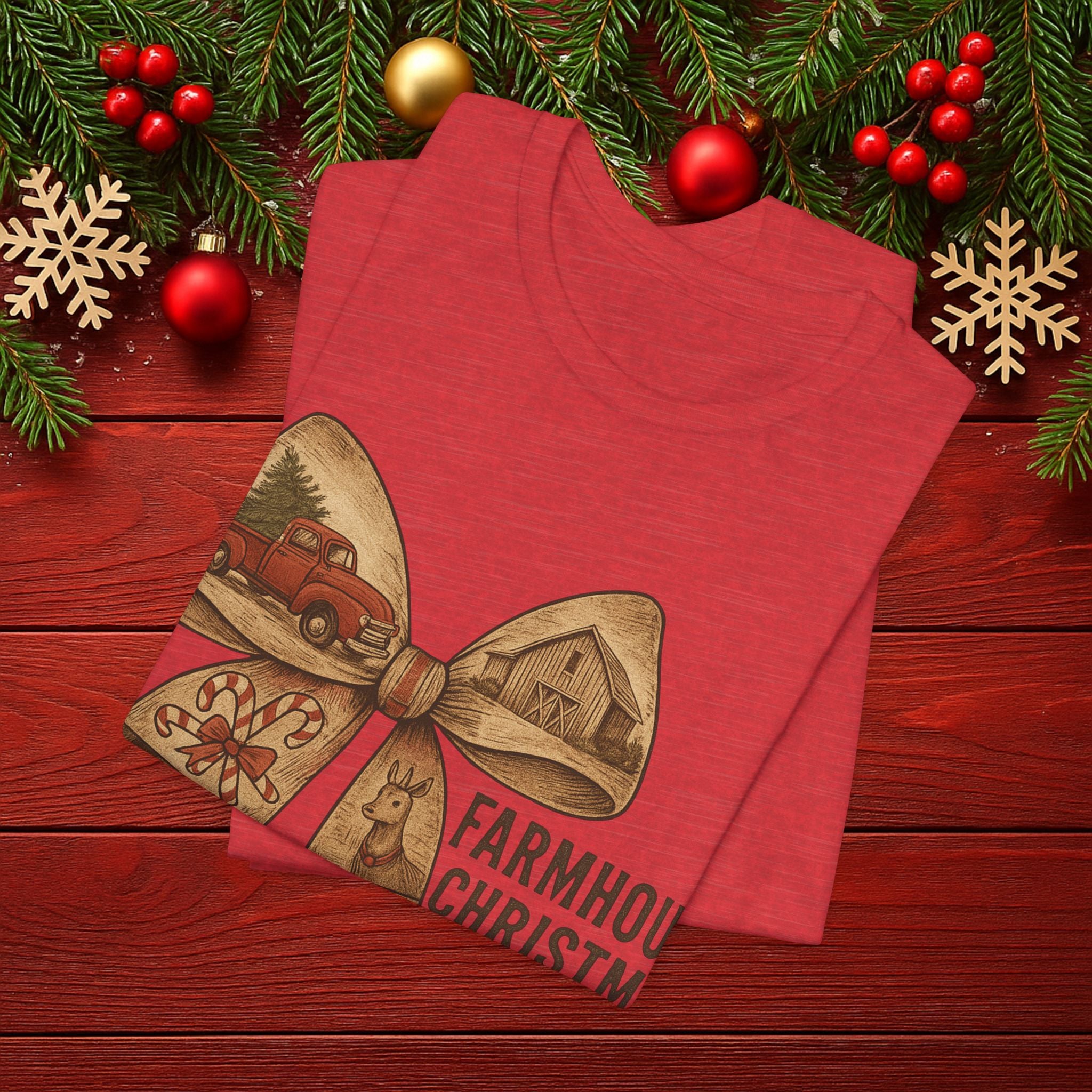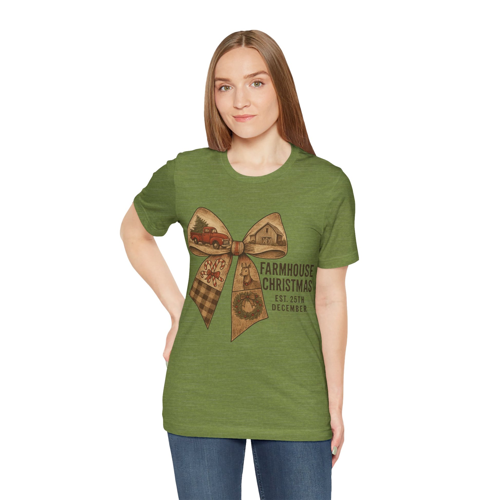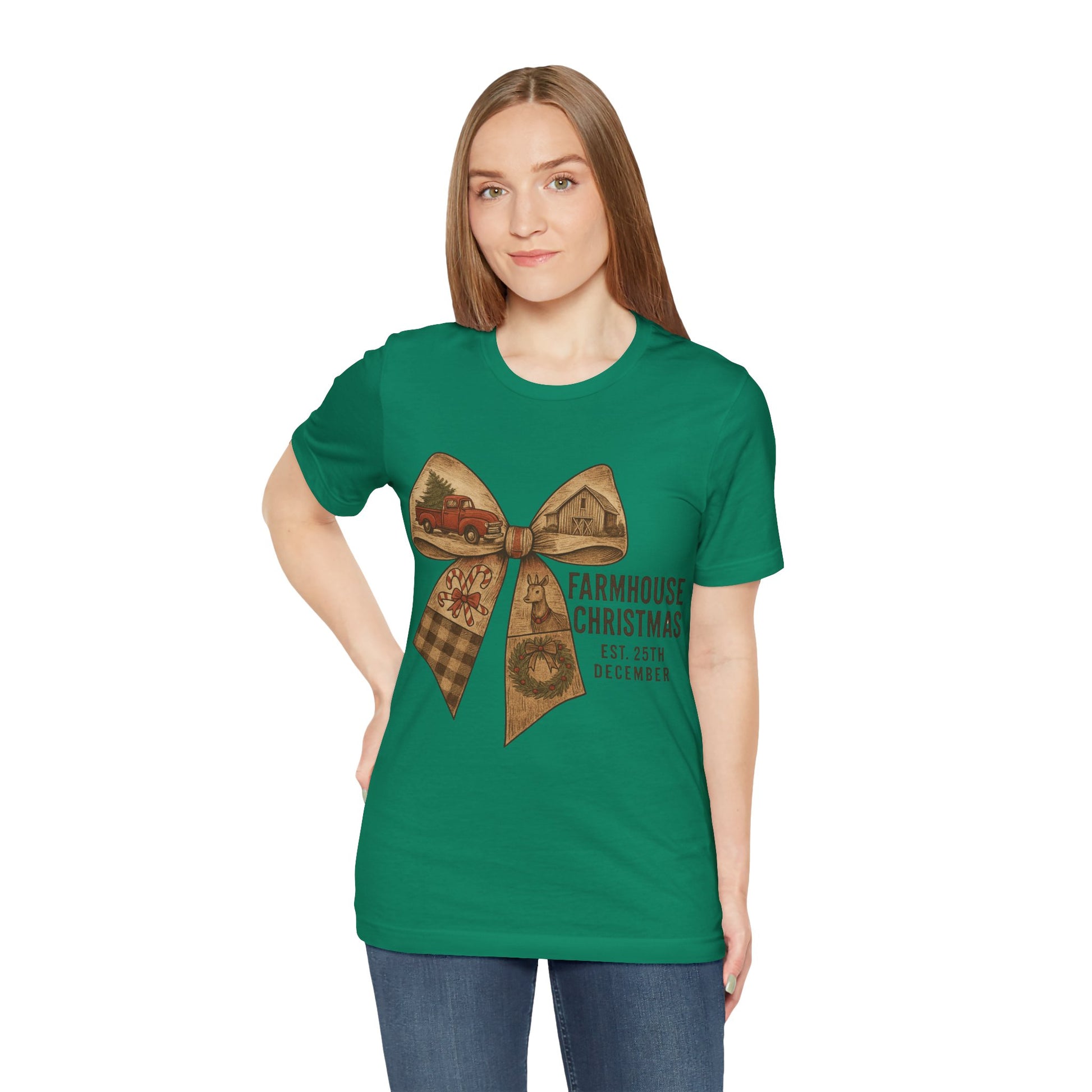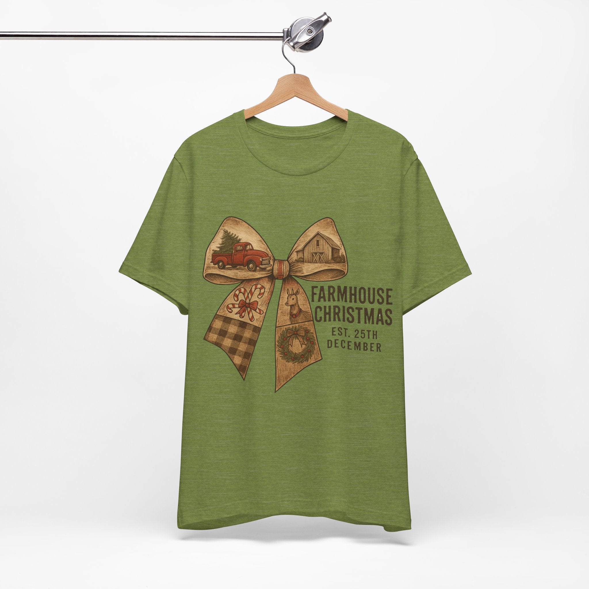 Farmhouse Christmas Tee – Rustic Bow 'Farmhouse Christmas EST. 25th December' Holiday Shirt