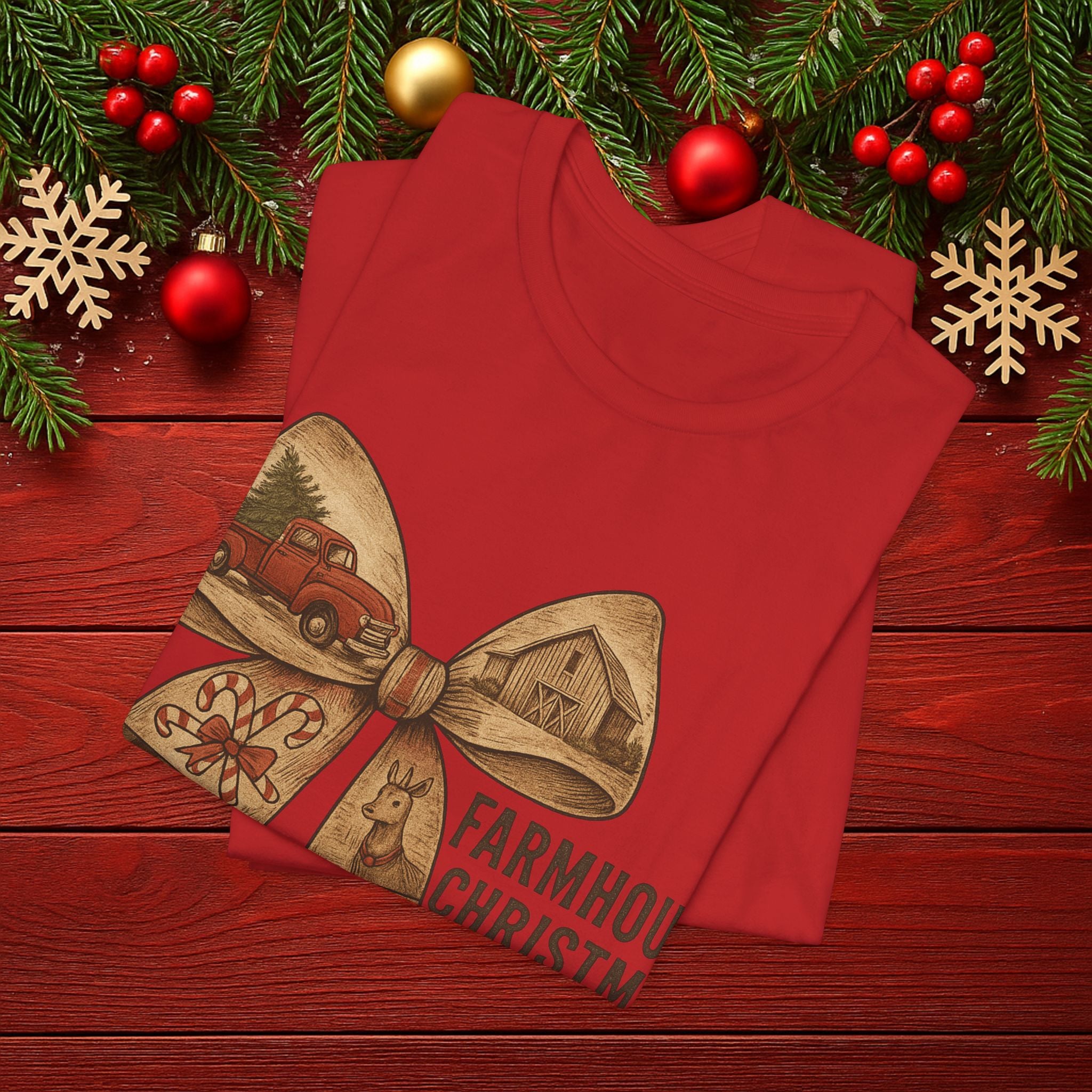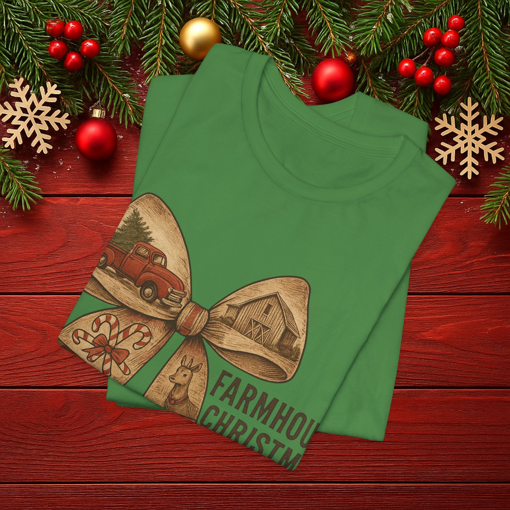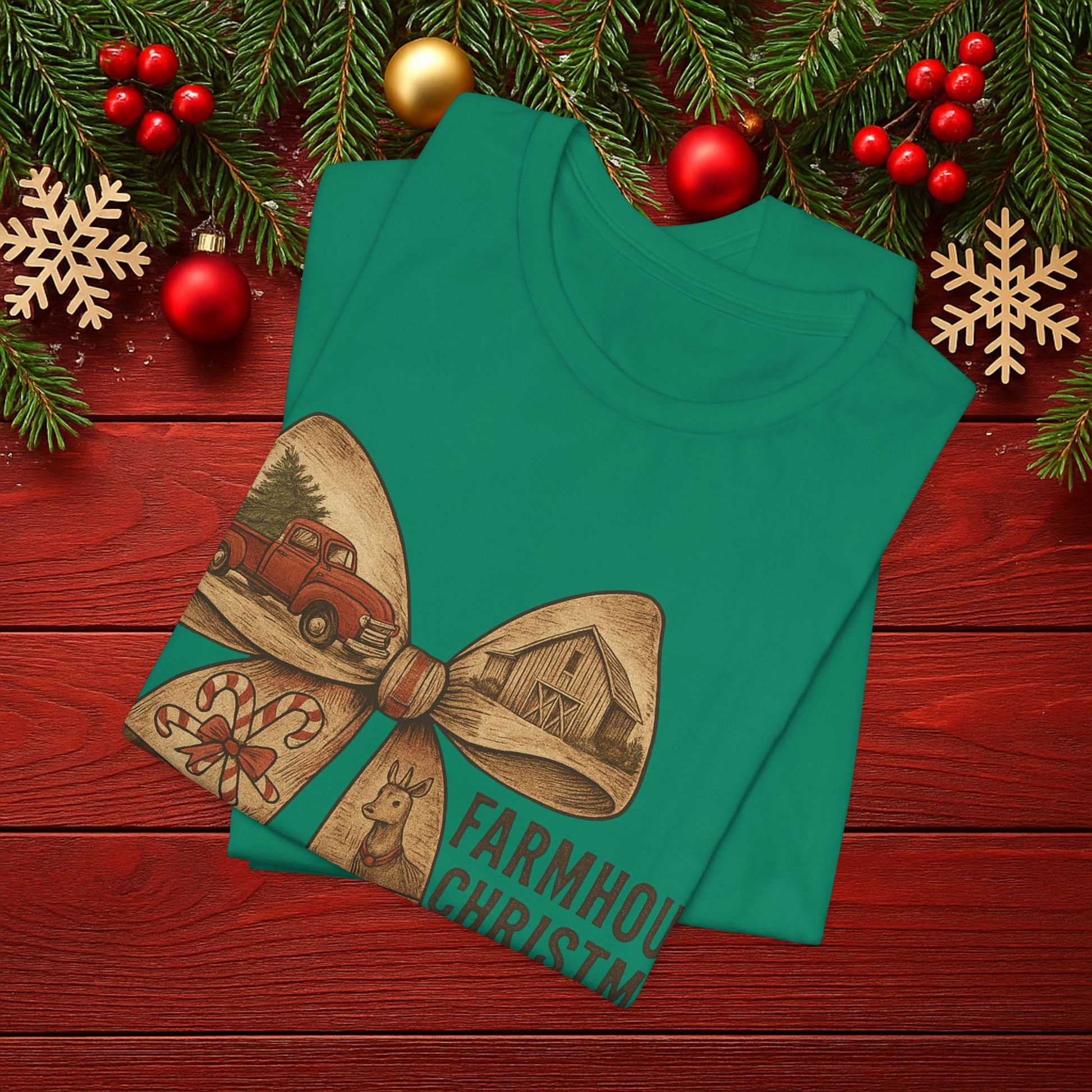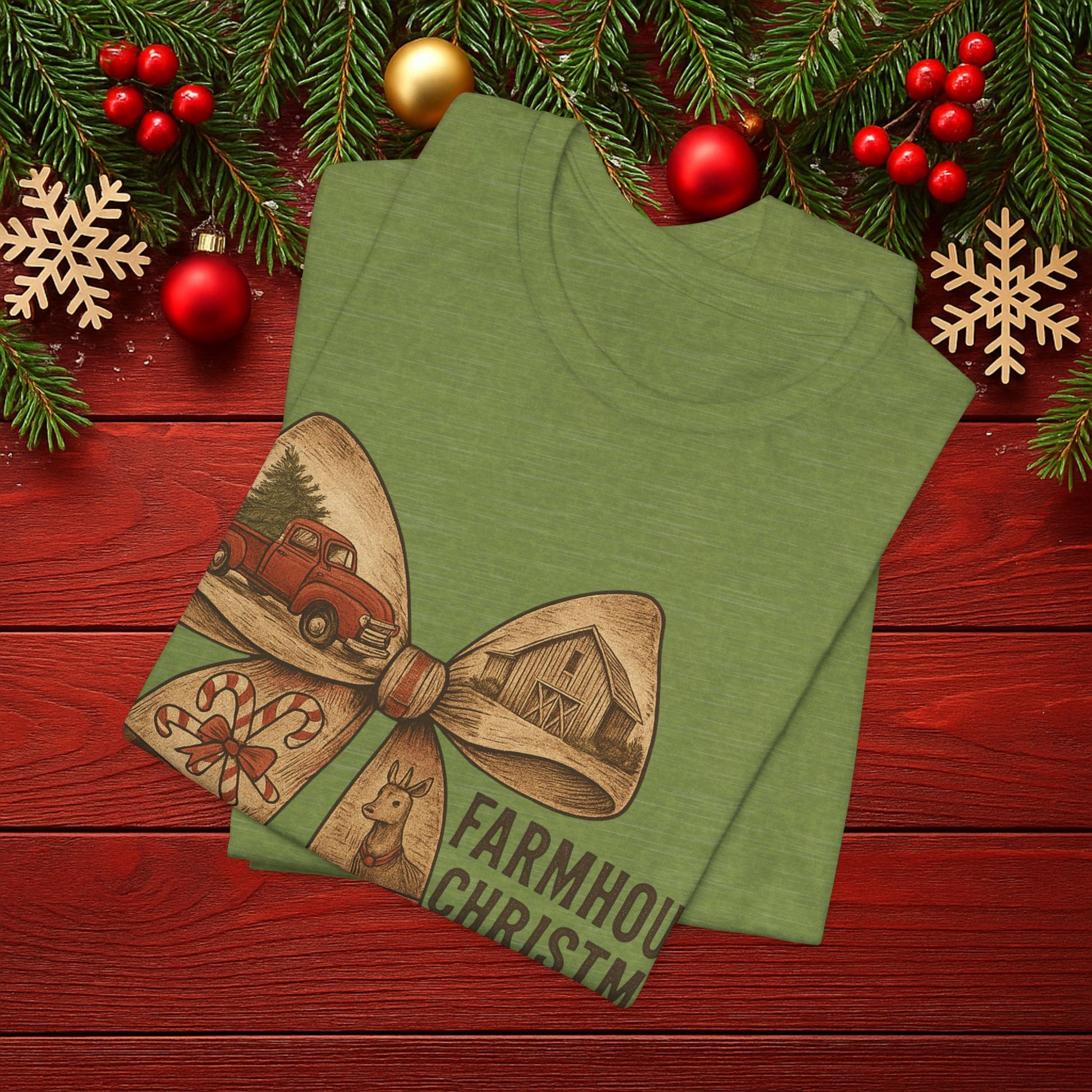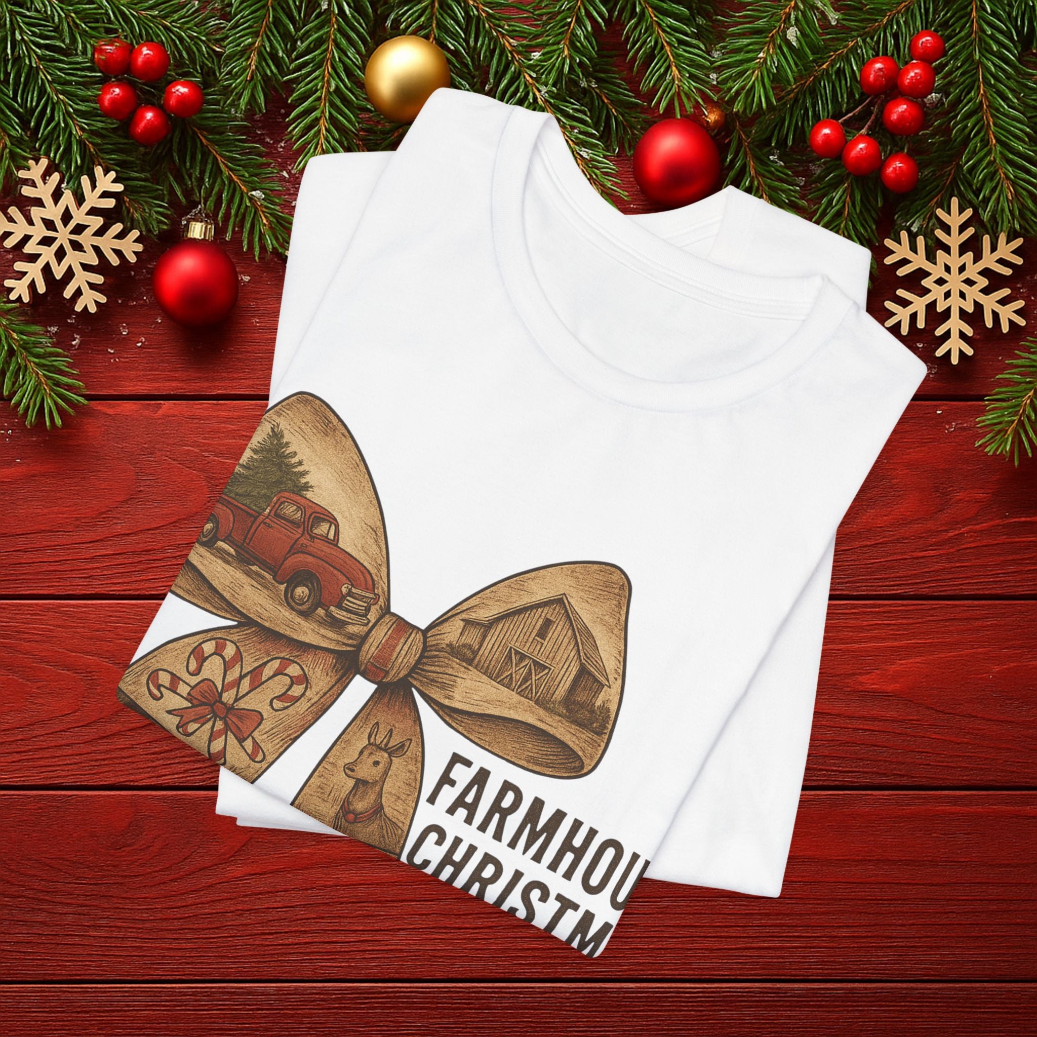 Farmhouse Christmas Tee – Rustic Bow 'Farmhouse Christmas EST. 25th December' Holiday Shirt