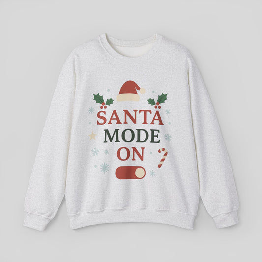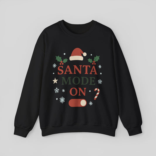 Santa Mode On Crewneck Sweatshirt — Festive Christmas Holiday Sweater