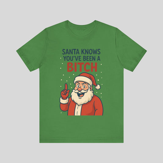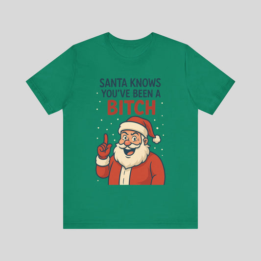Funny Christmas Tee — "Santa Knows You've Been a Bitch" Graphic T-Shirt