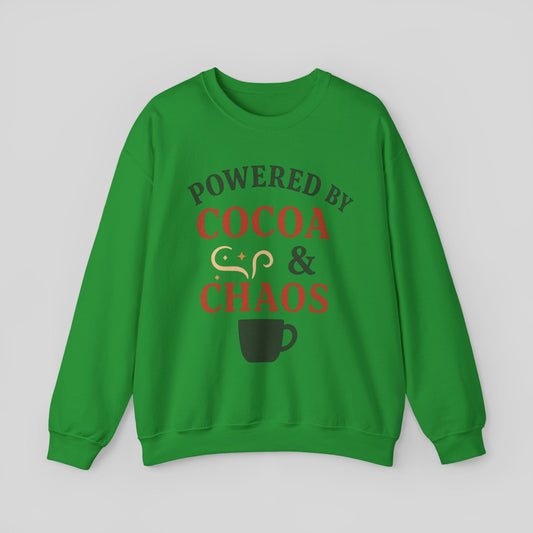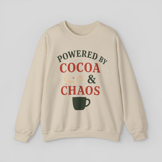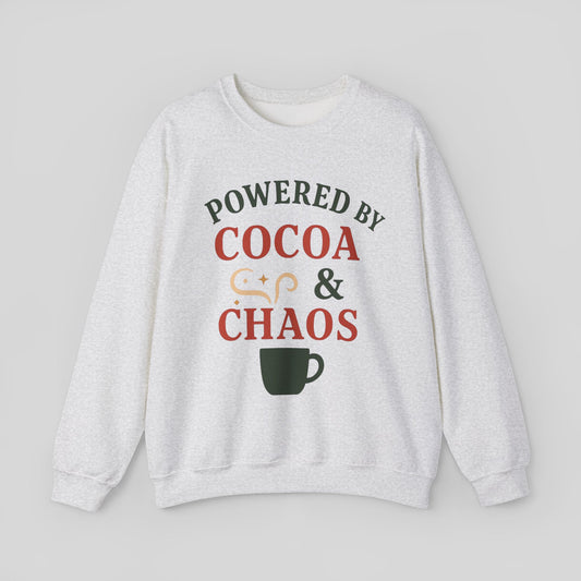 Sweatshirt — "Powered by Cocoa & Chaos" Cozy Holiday Crewneck