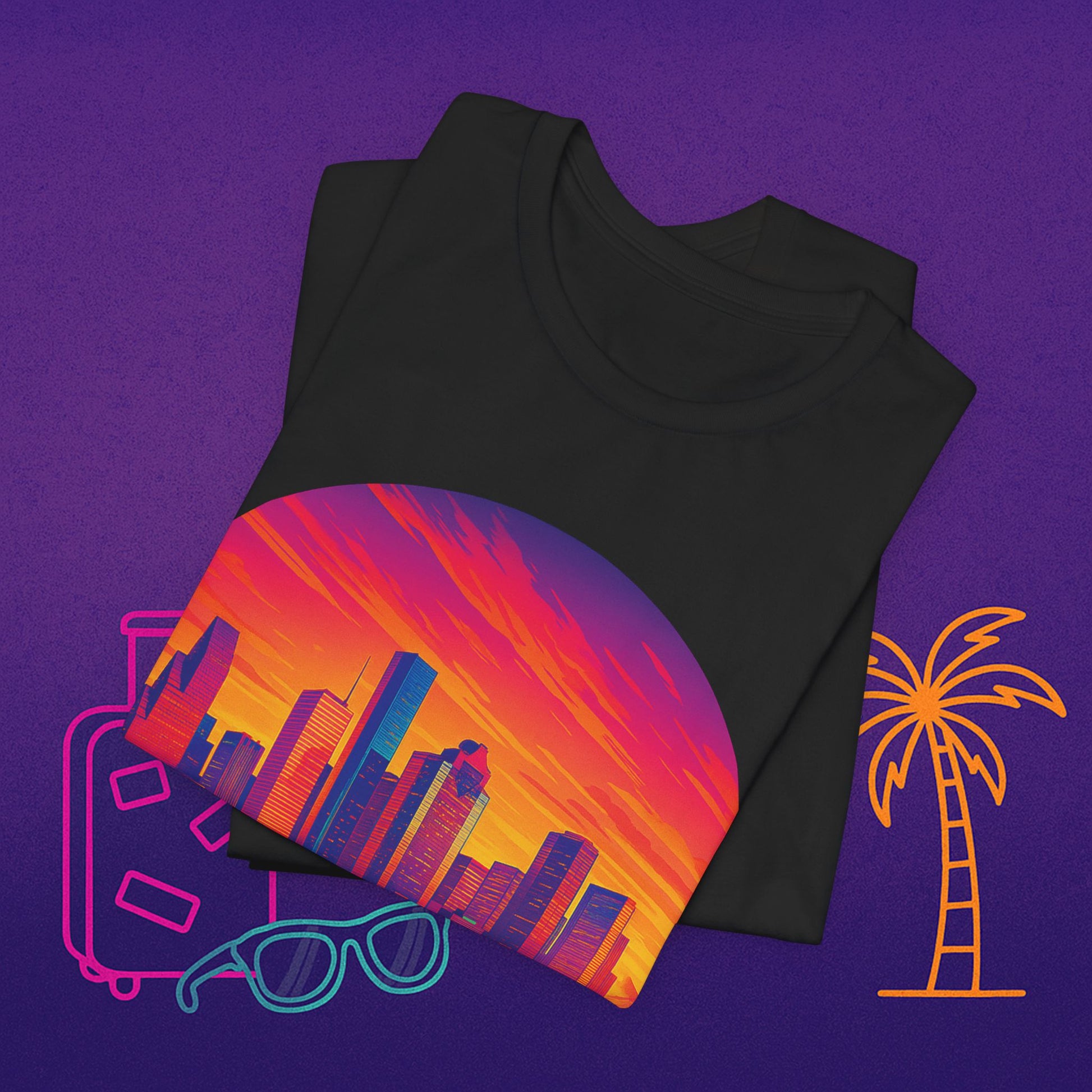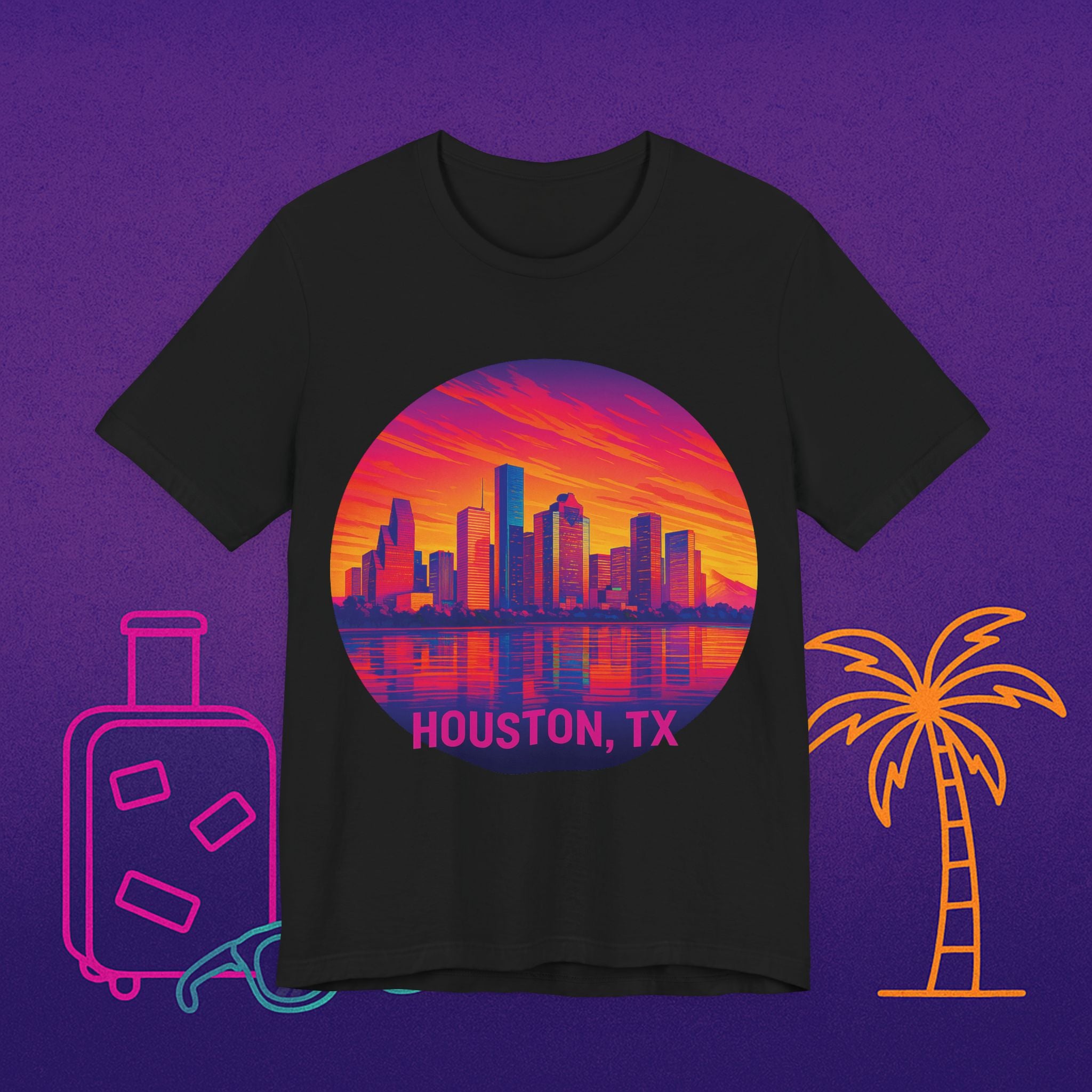 Houston Skyline Tee — Retro Sunset Cityscape (Houston, TX)