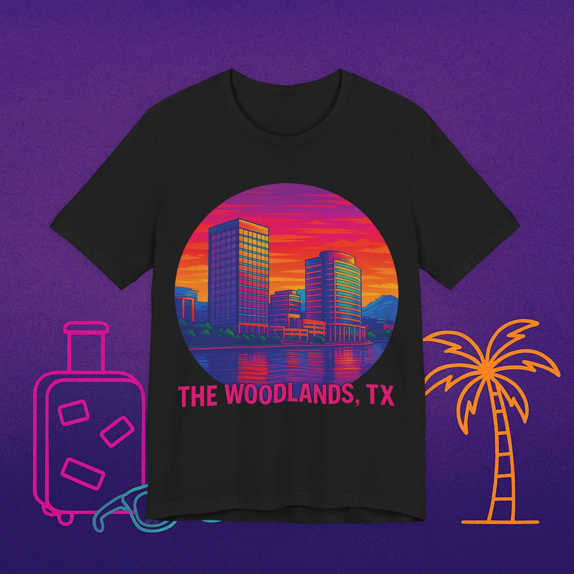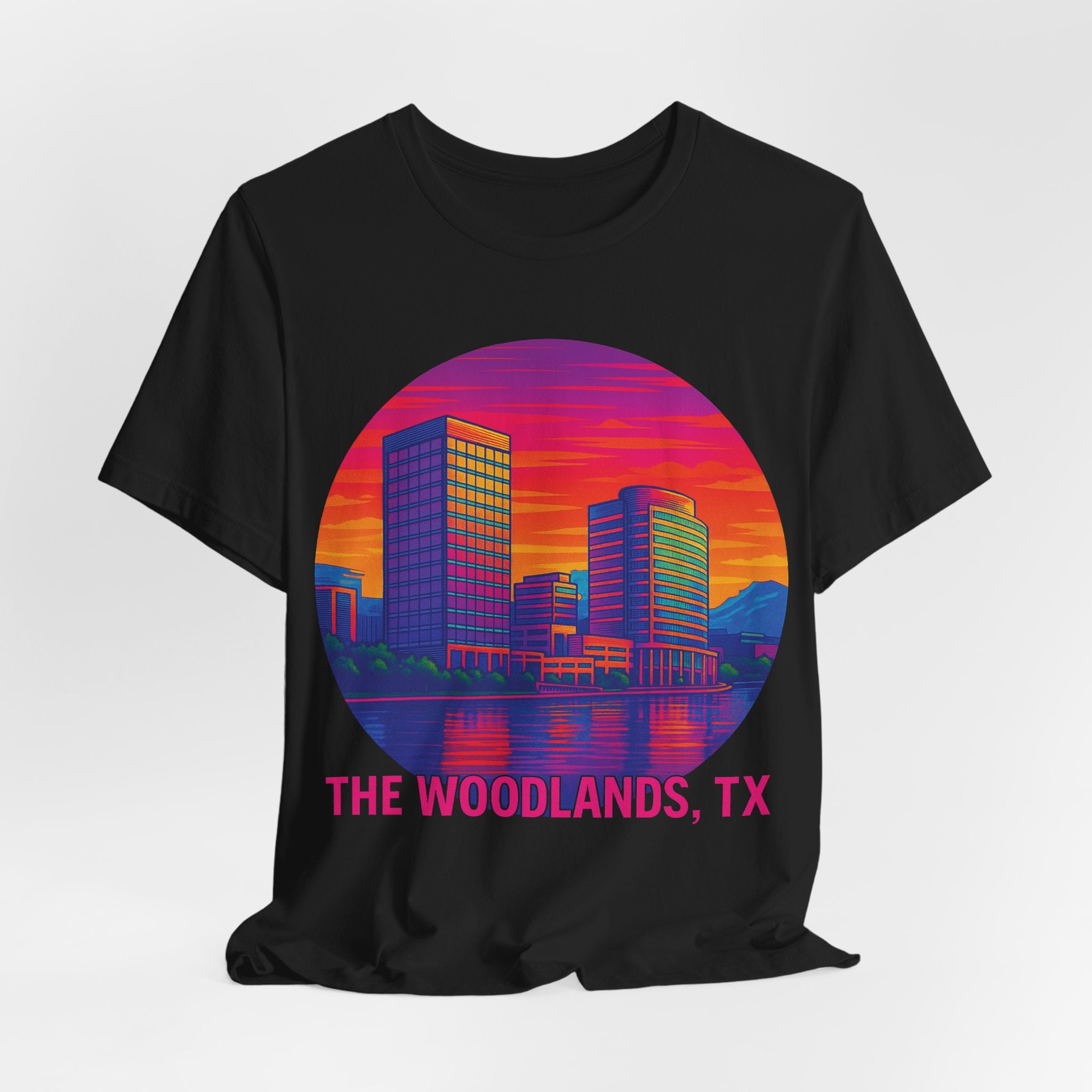The Woodlands, TX Skyline Tee — Retro Sunset Cityscape T‑Shirt