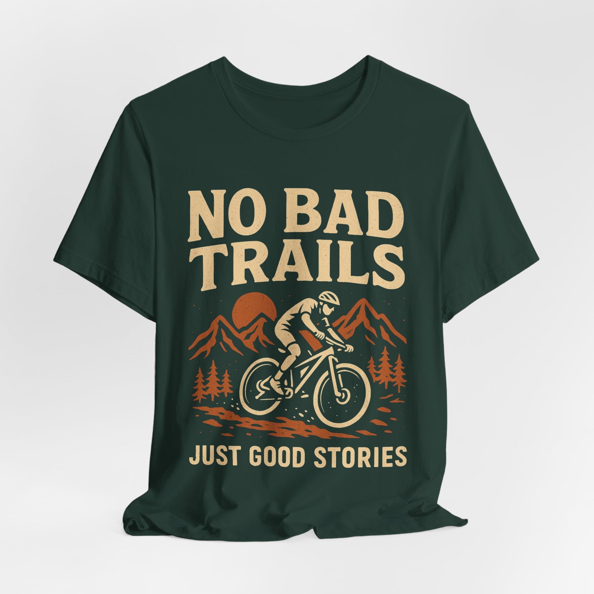 Mountain Biking Tee — "No Bad Trails, Just Good Stories" Adventure T‑Shirt
