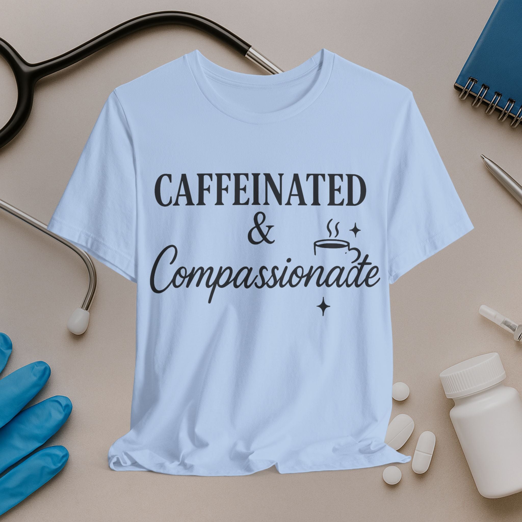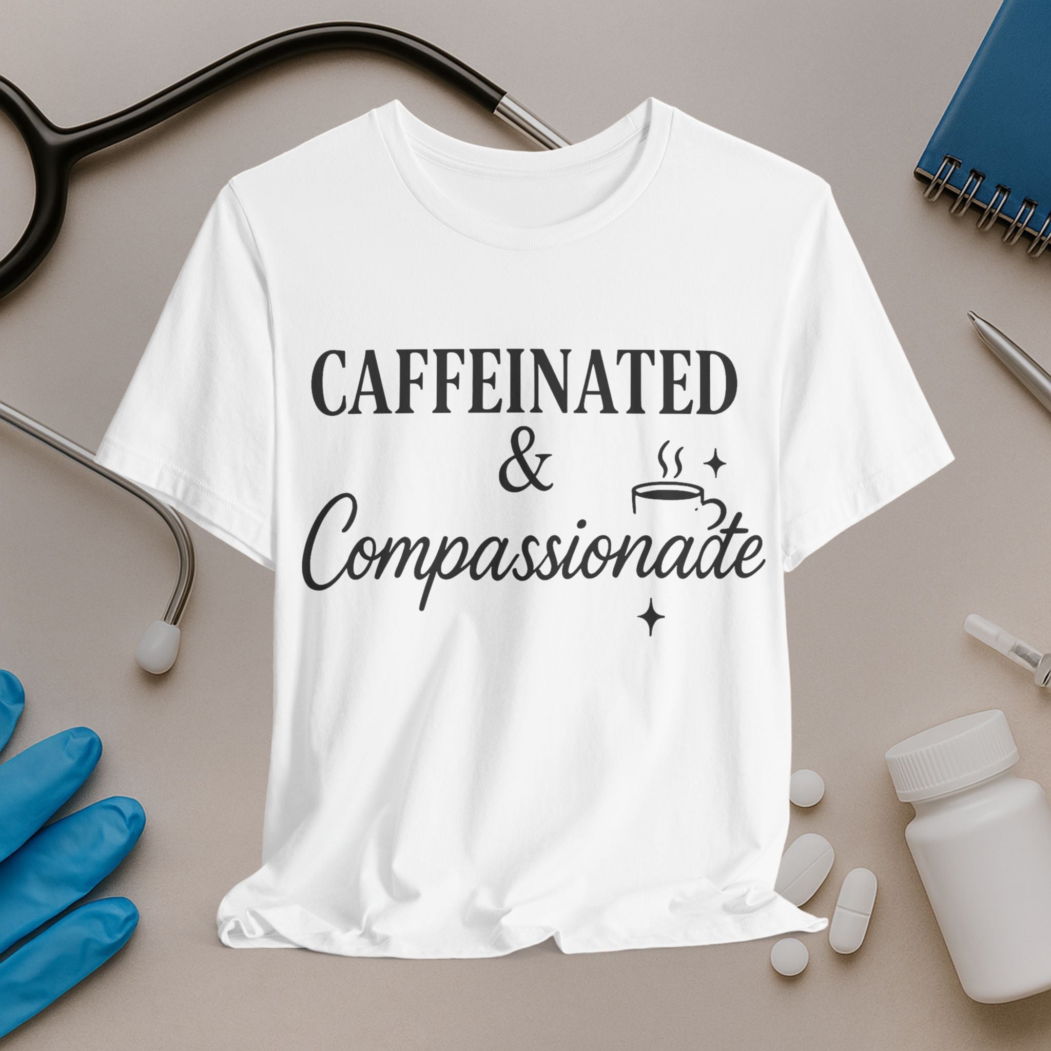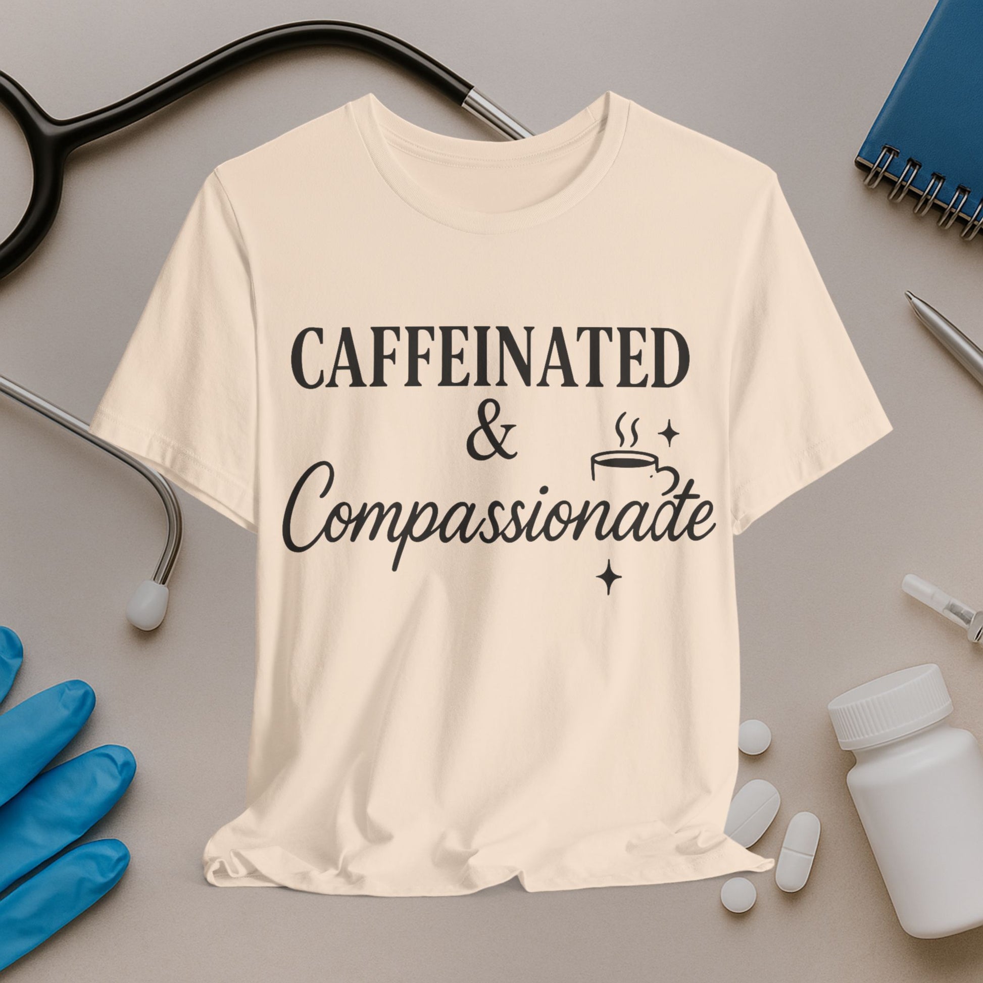 Caffeinated & Compassionate Tee for Nurses