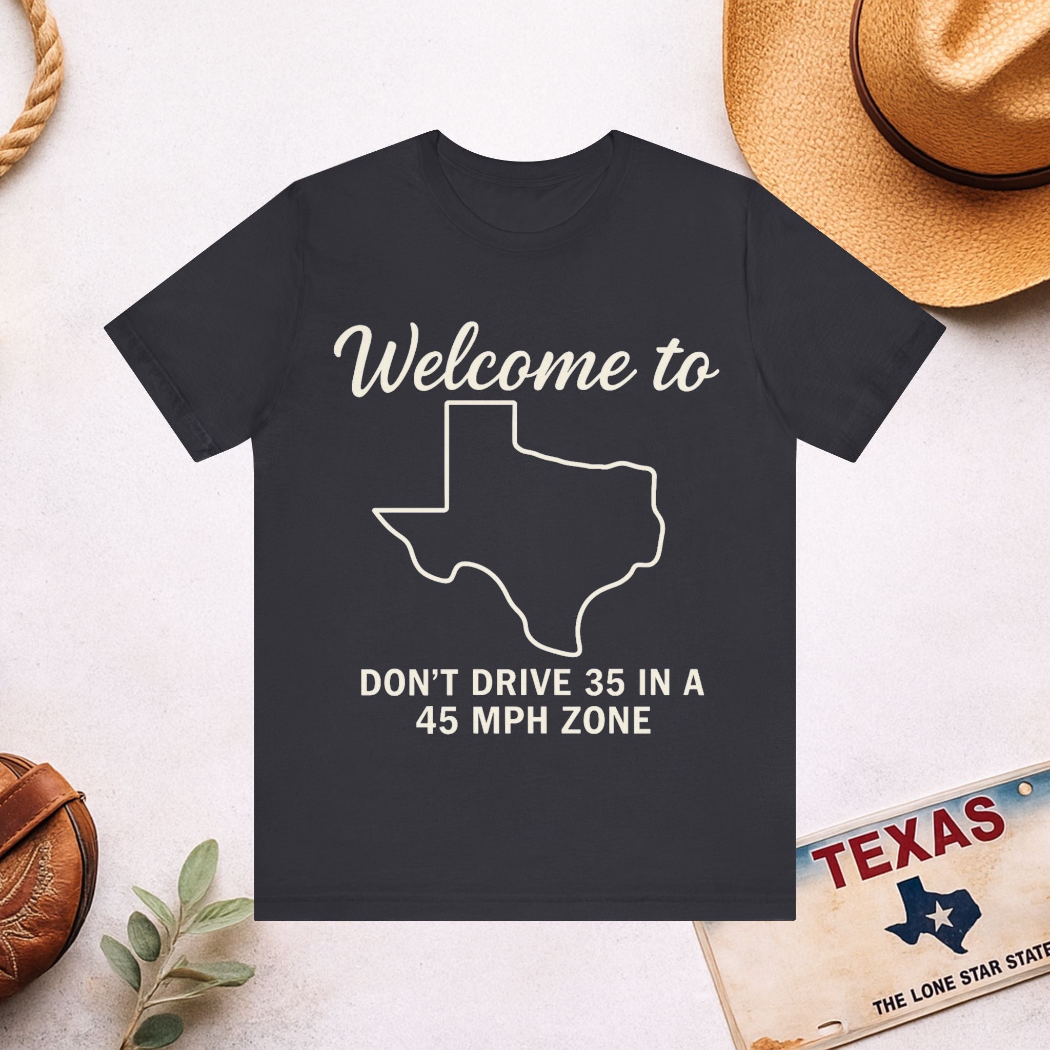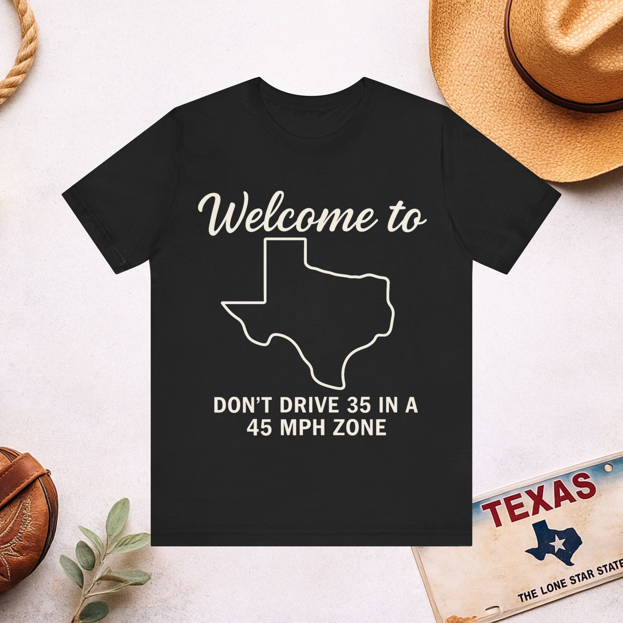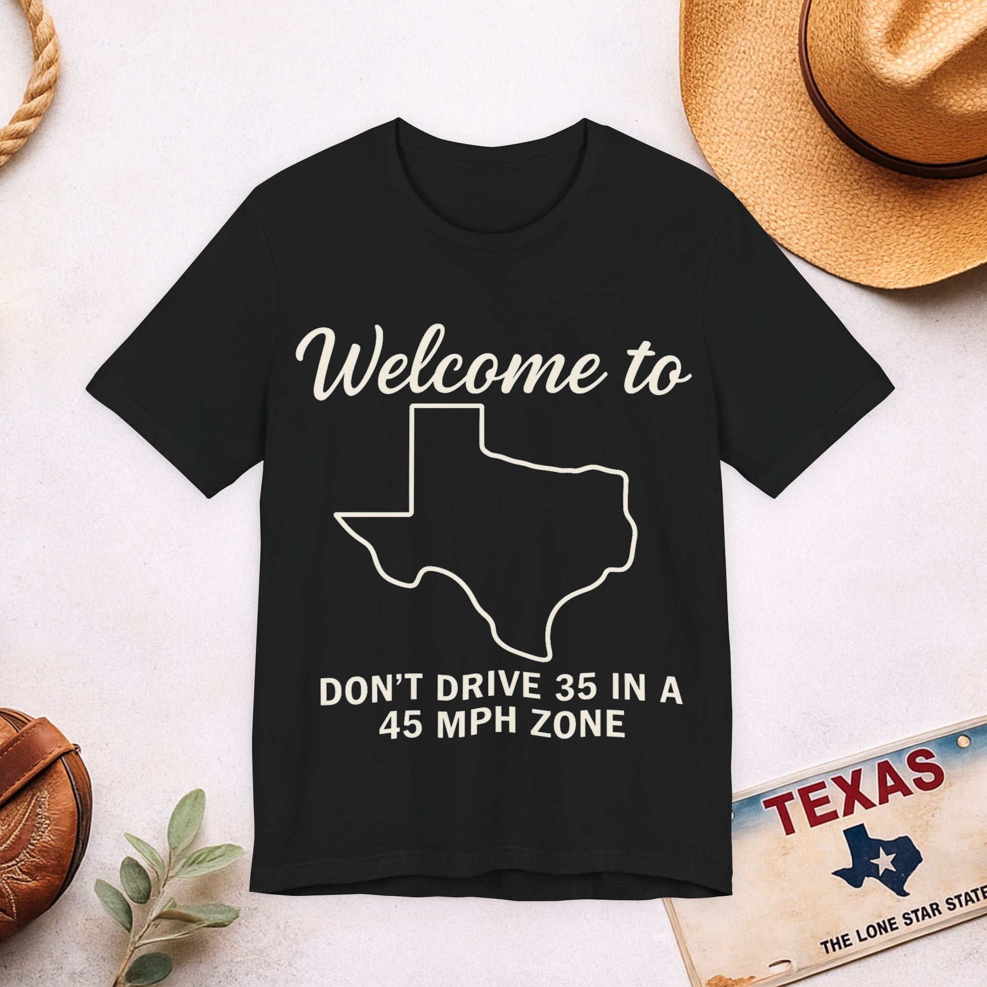 Welcome to Texas Tee — “Don't Drive 35 in a 45 MPH Zone” Funny State Shirt