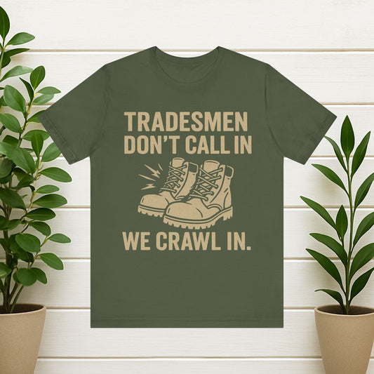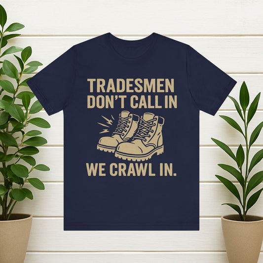 Tradesmen Don't Call In We Crawl In Tee - Work Boot Graphic T-Shirt for Tradespeople