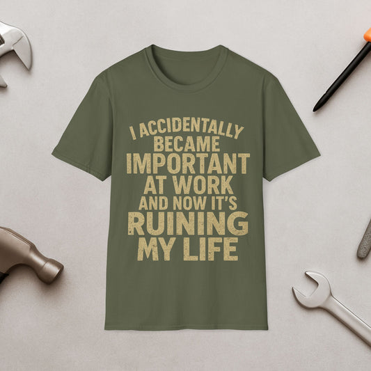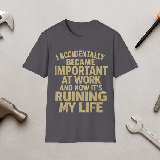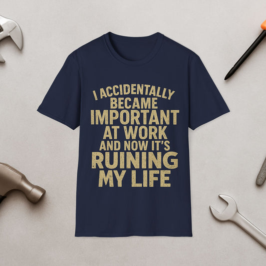 Funny Work Quote T-Shirt — "I Accidentally Became Important at Work and Now It’s Ruining My Life"