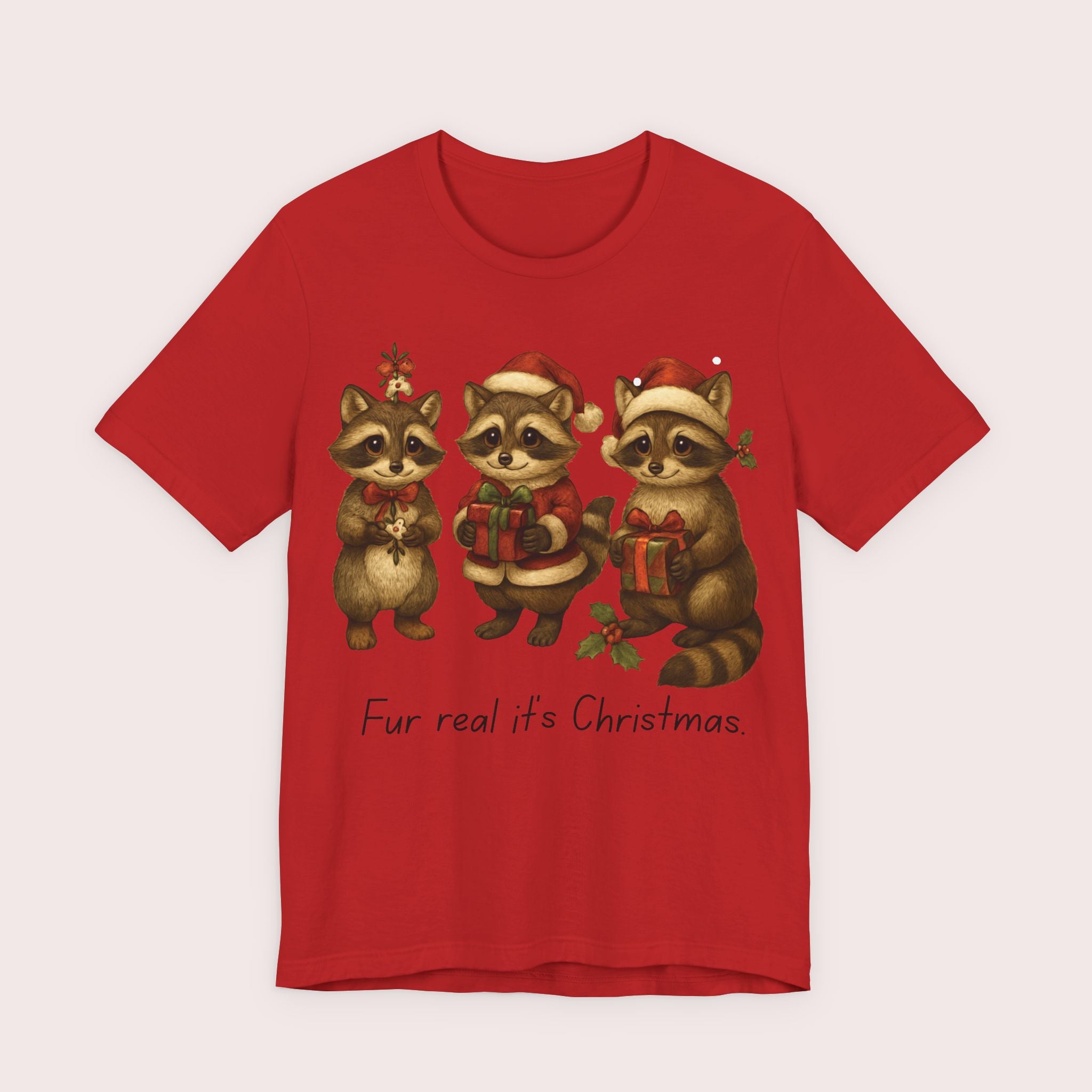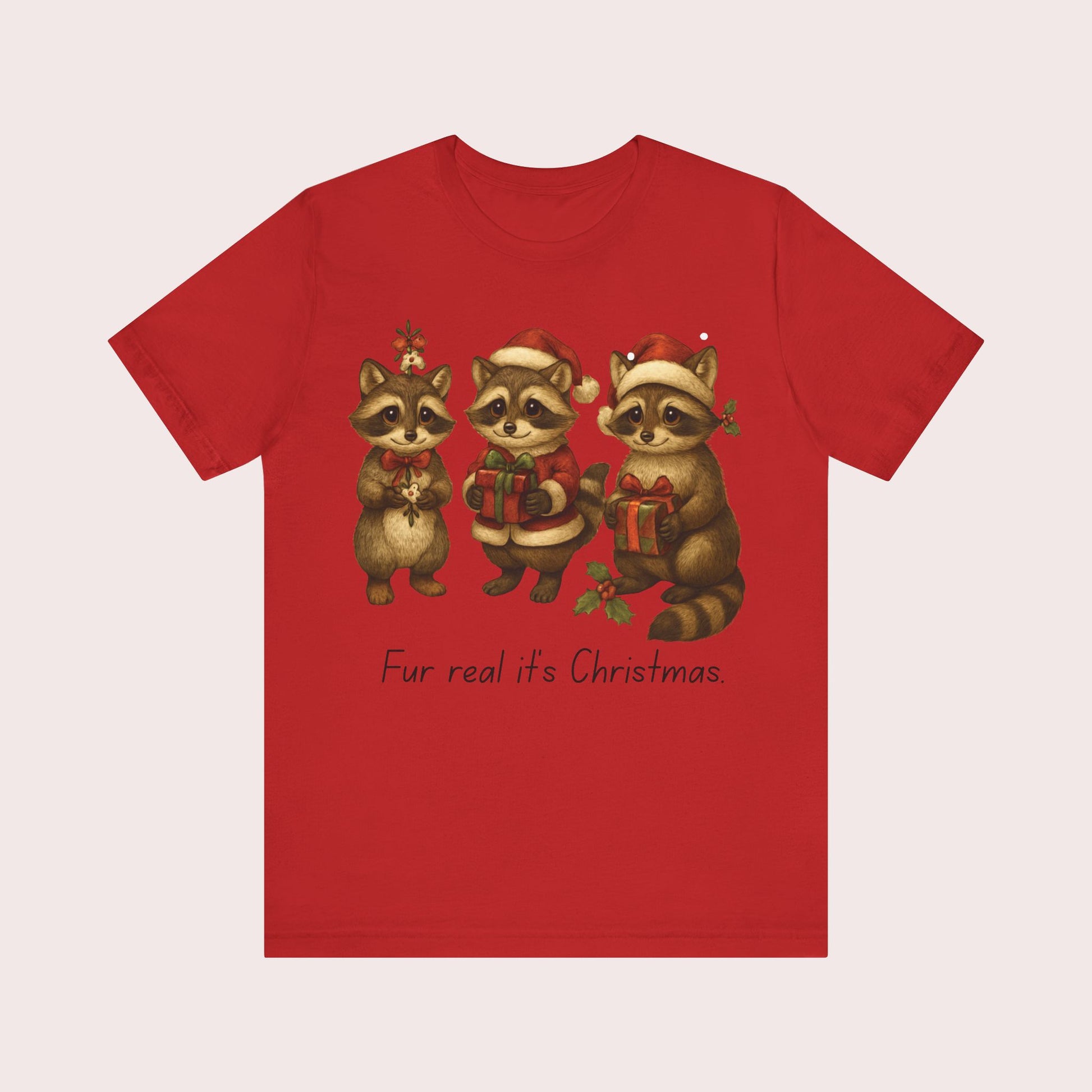 Christmas Raccoon Trio Tee – “Fur real it’s Christmas” Holiday T-Shirt