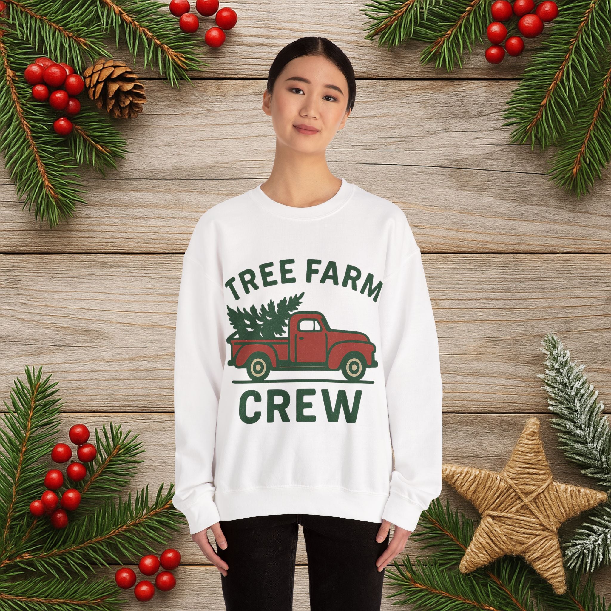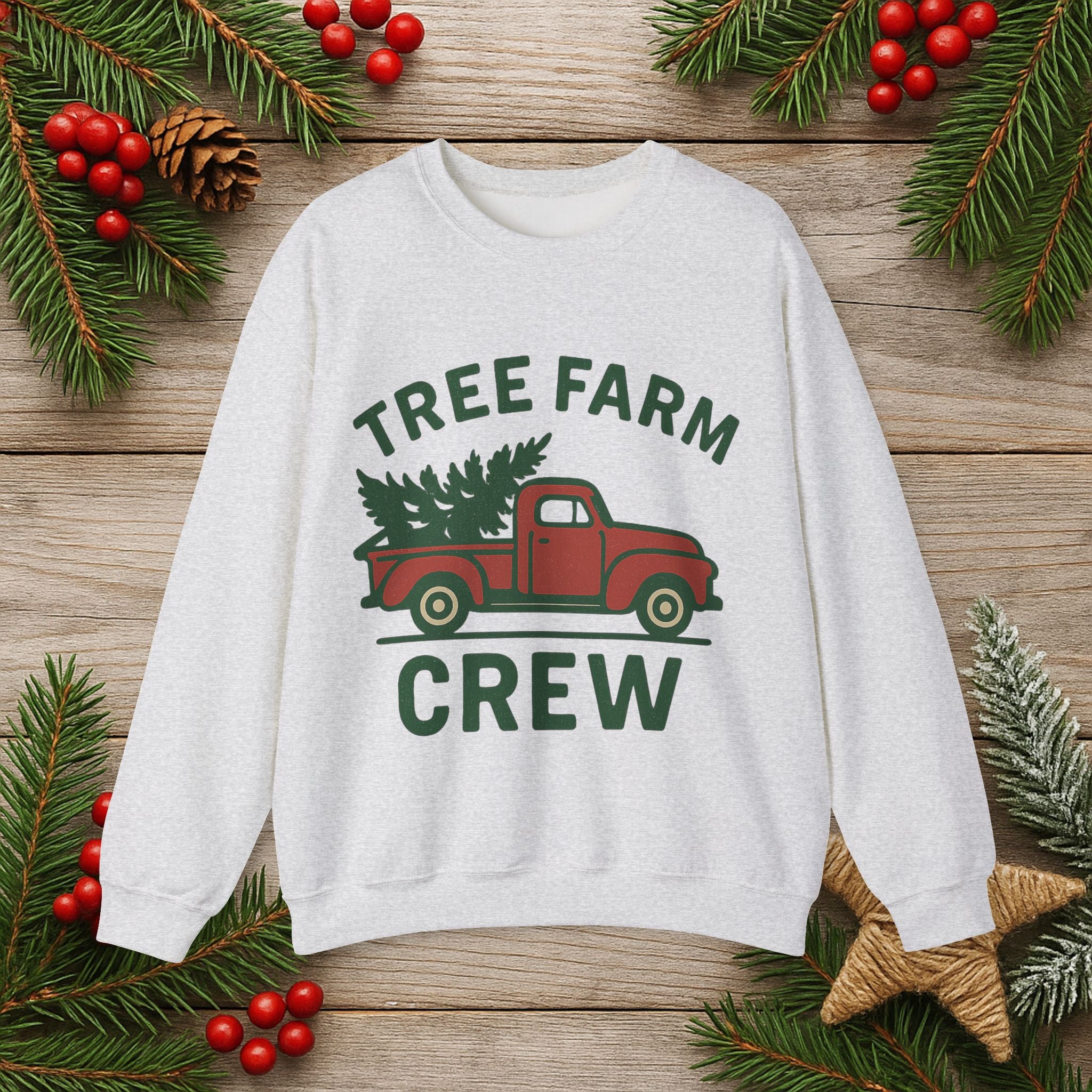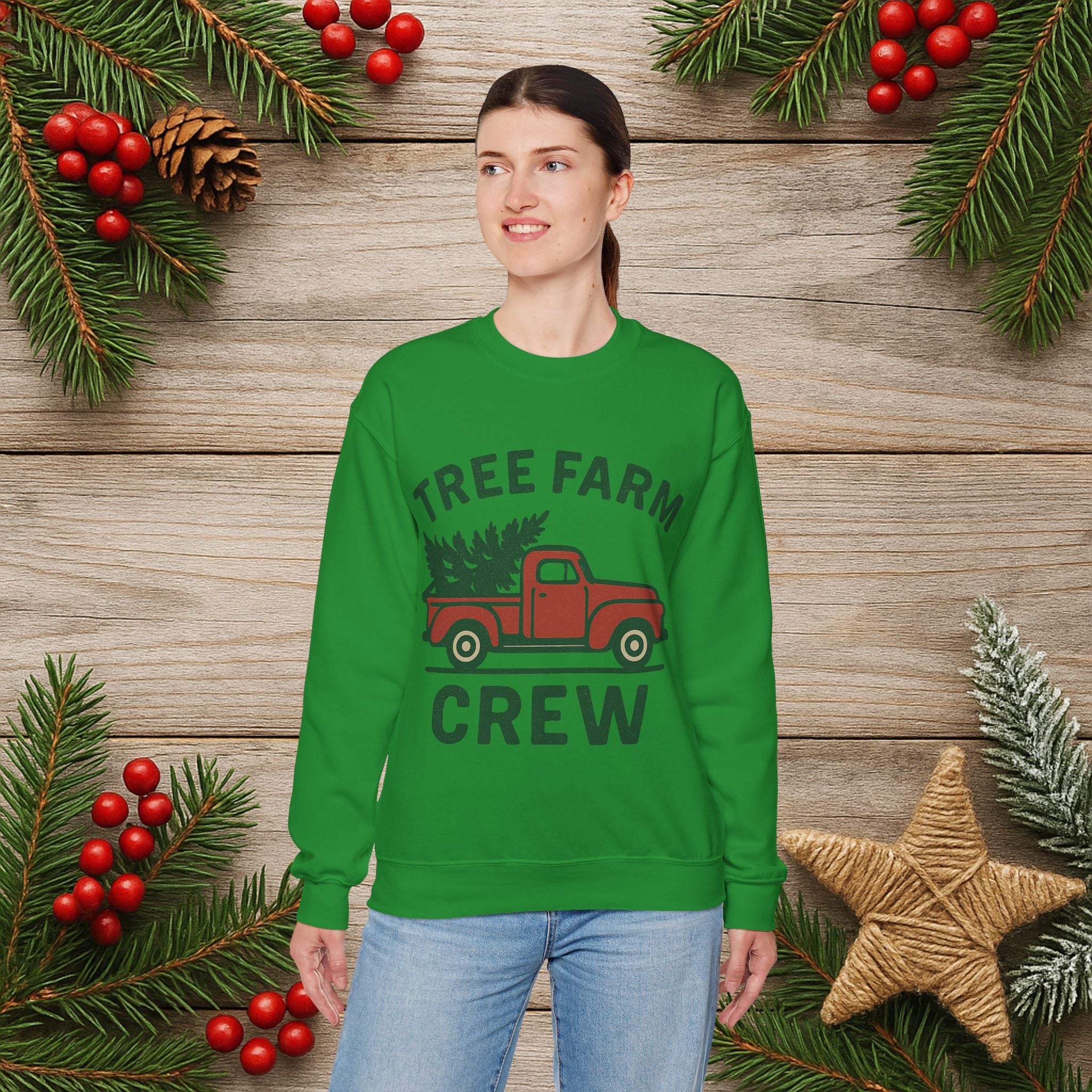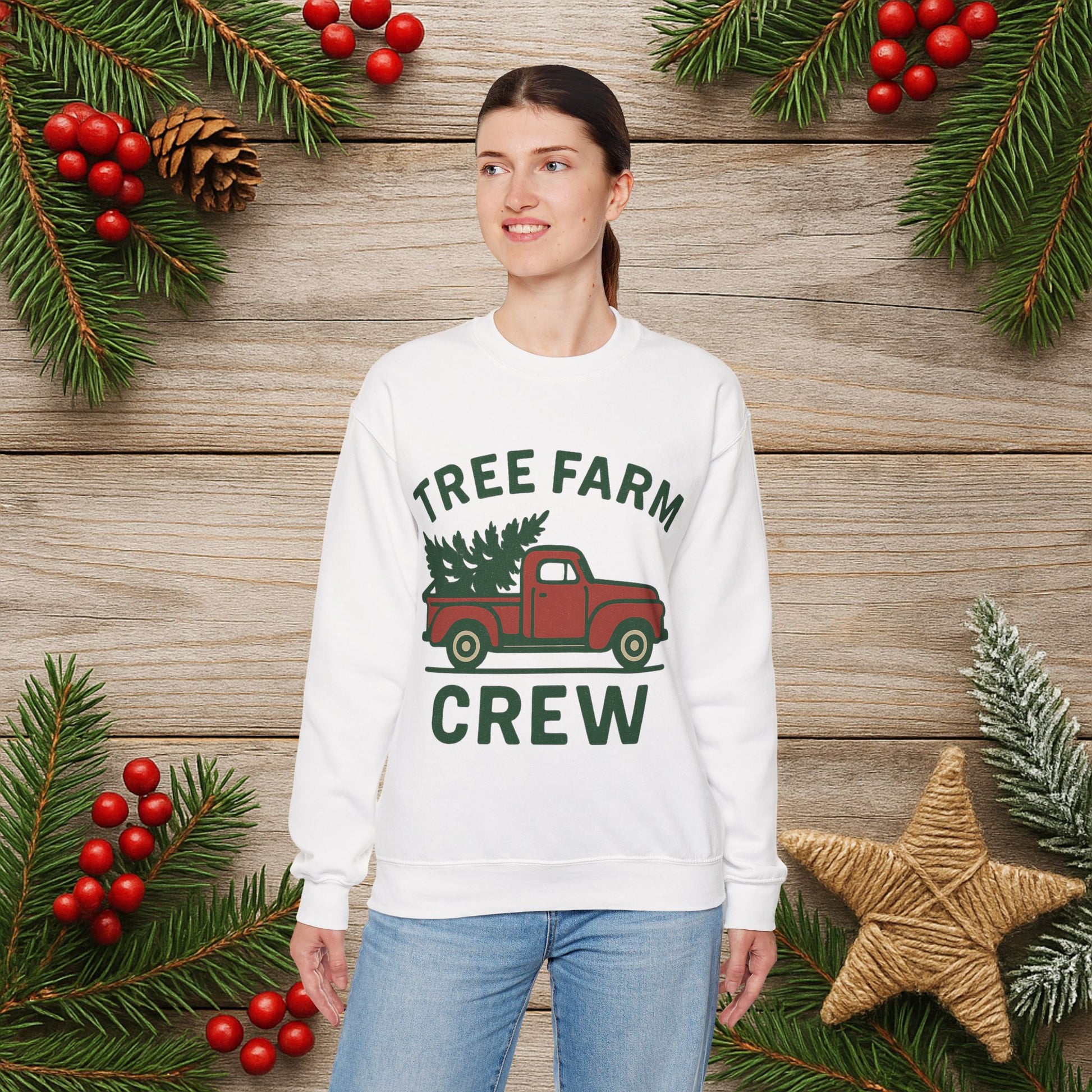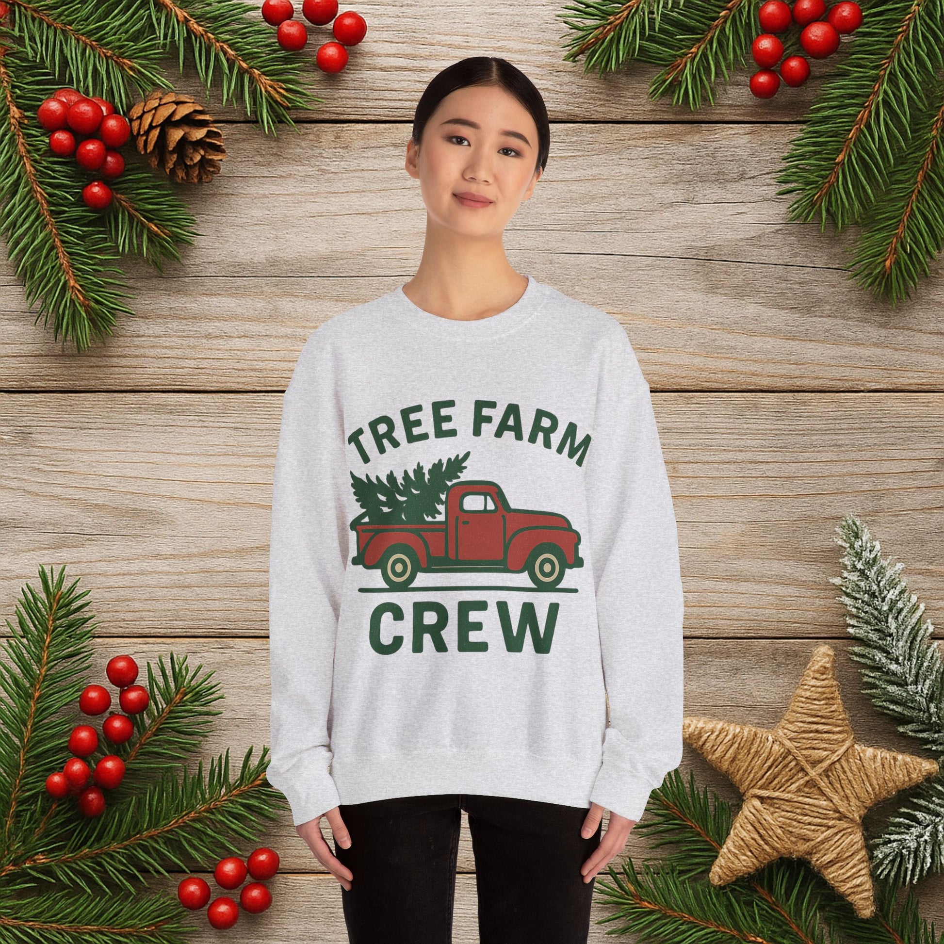 Crewneck Sweatshirt - 'Tree Farm Crew' Vintage Truck Christmas Pullover