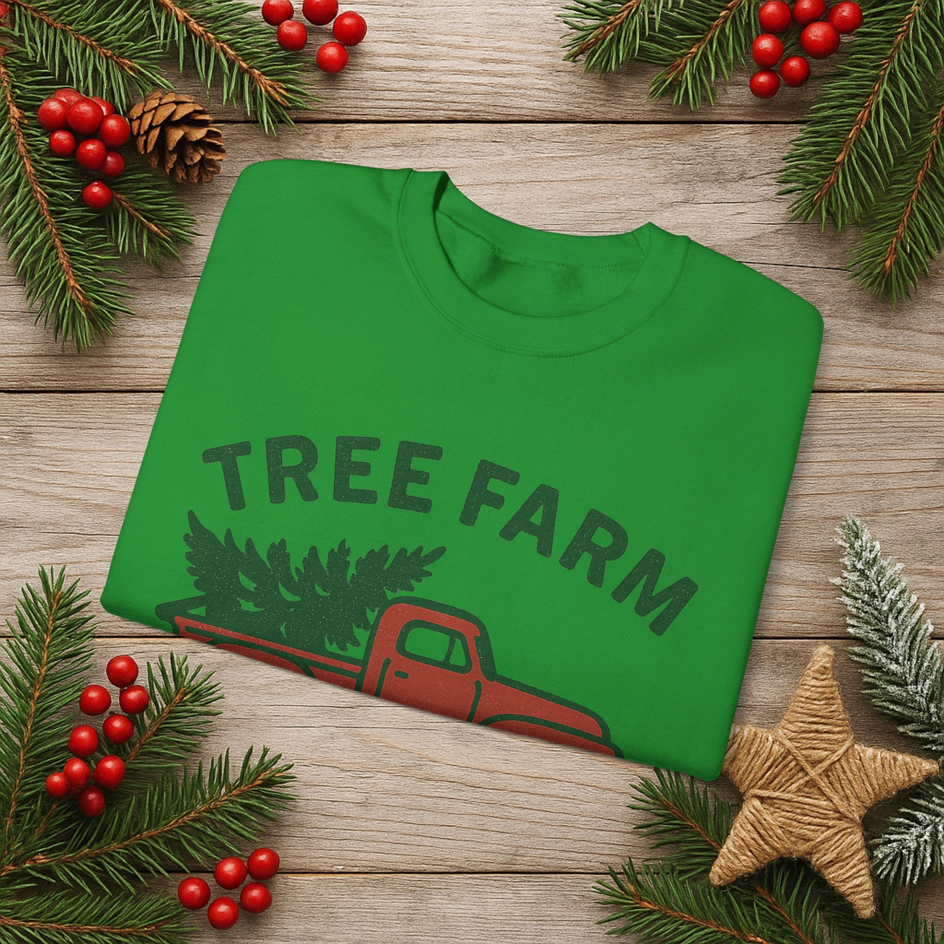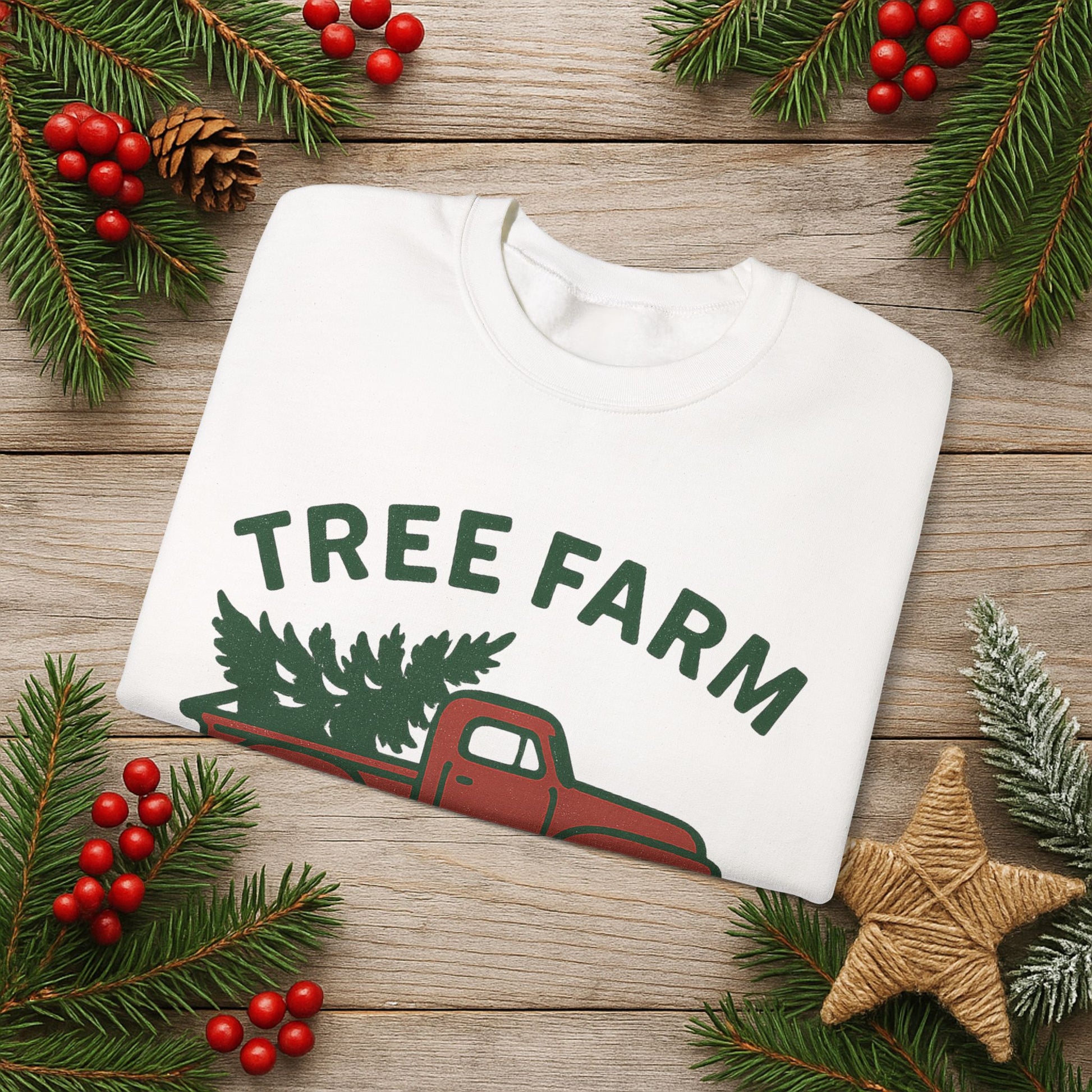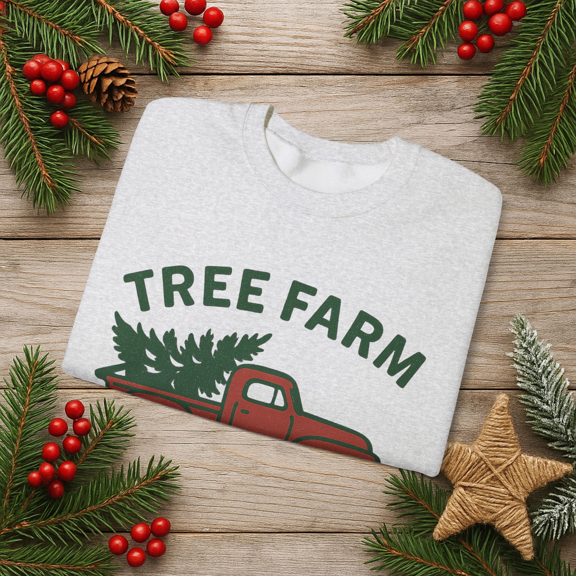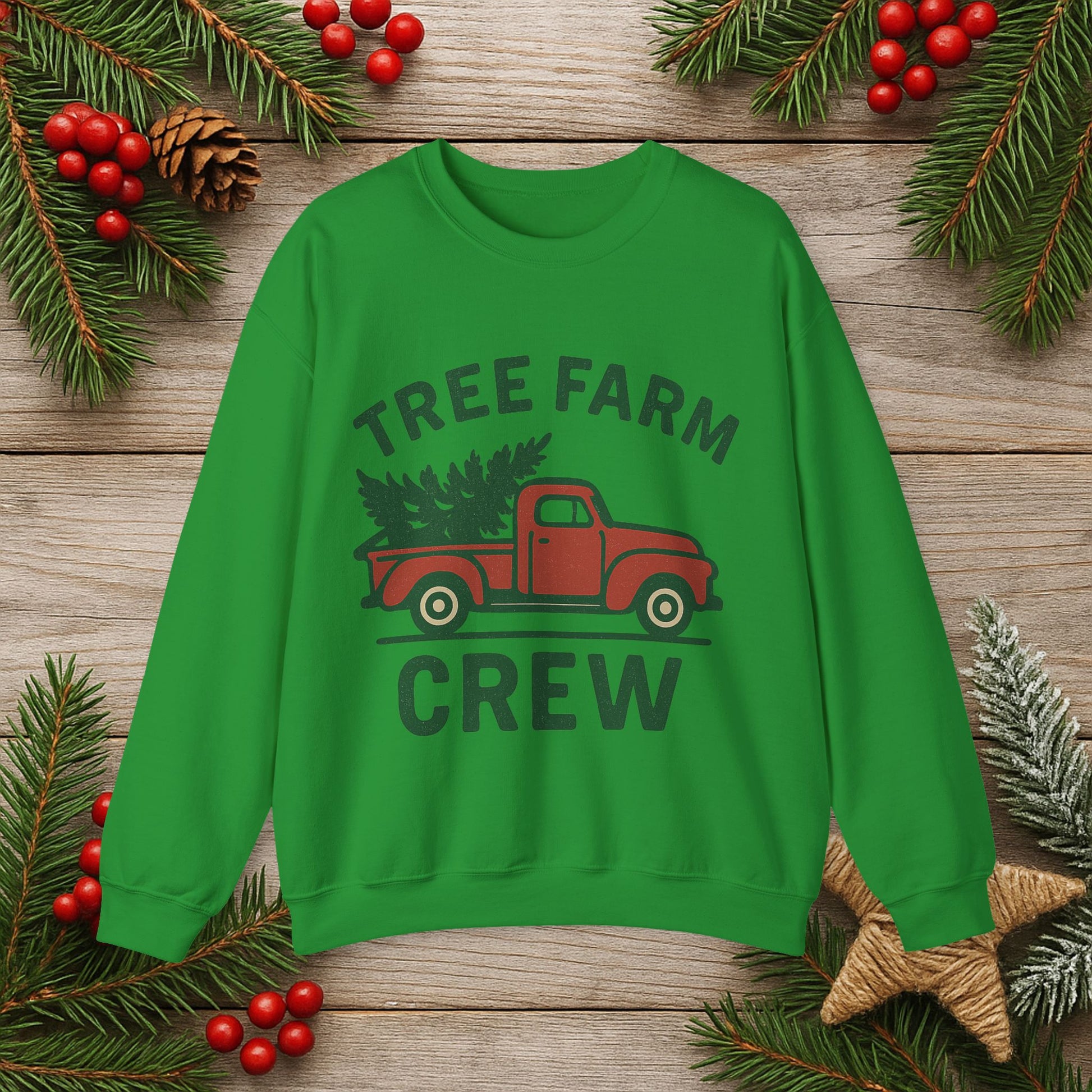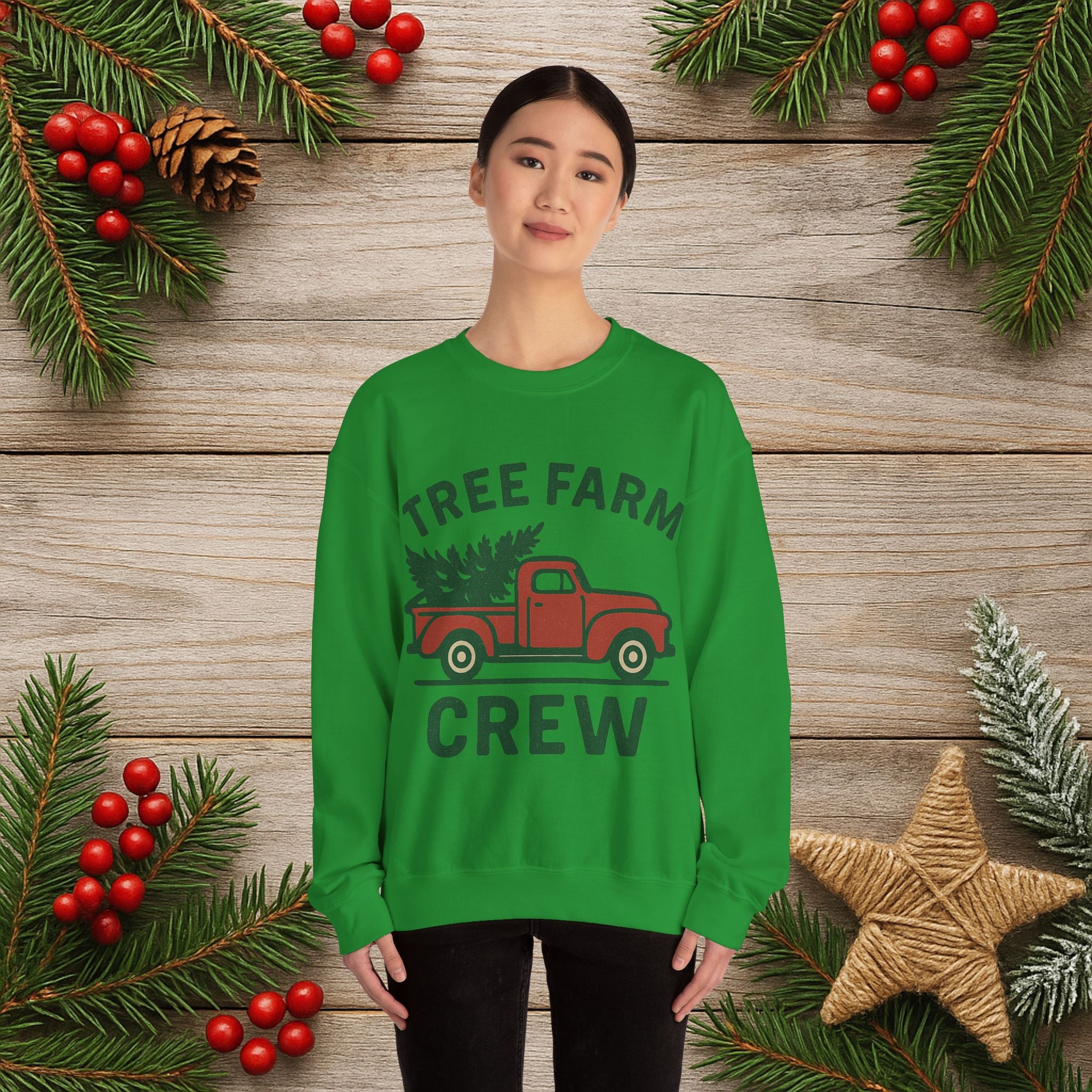 Crewneck Sweatshirt - 'Tree Farm Crew' Vintage Truck Christmas Pullover