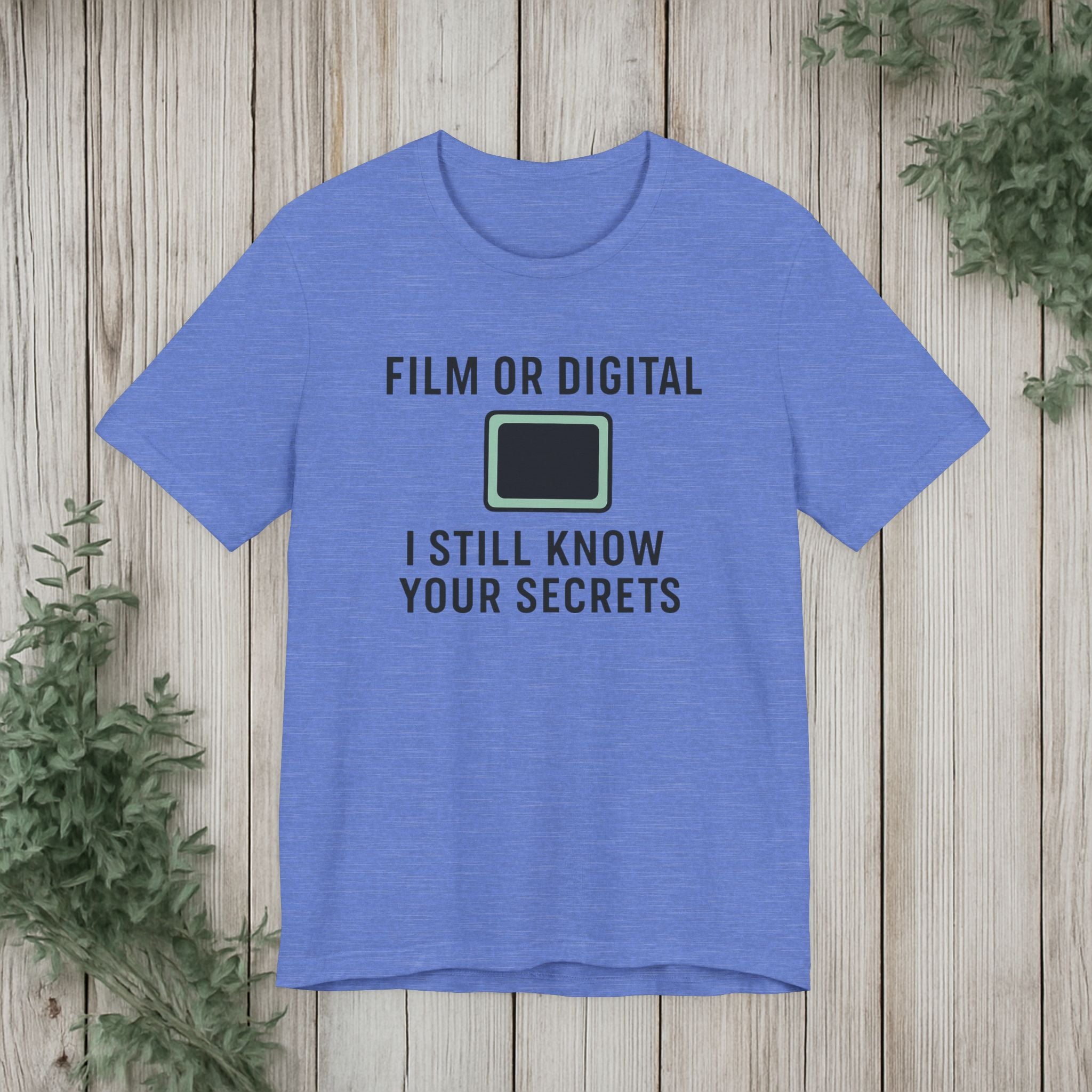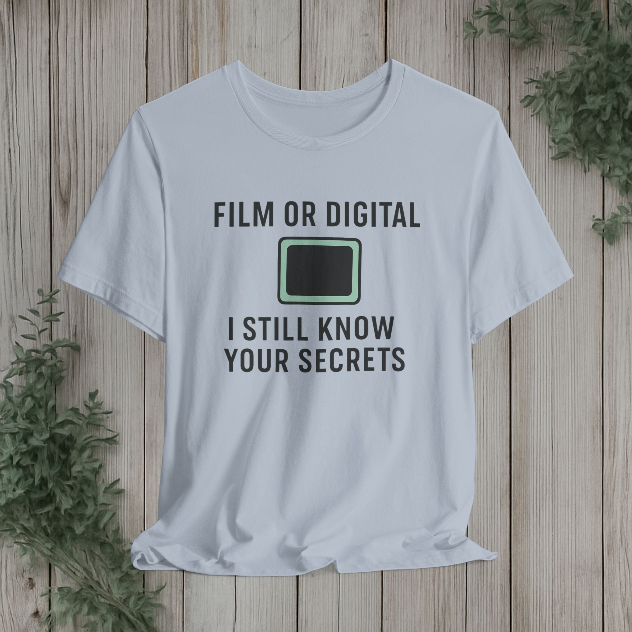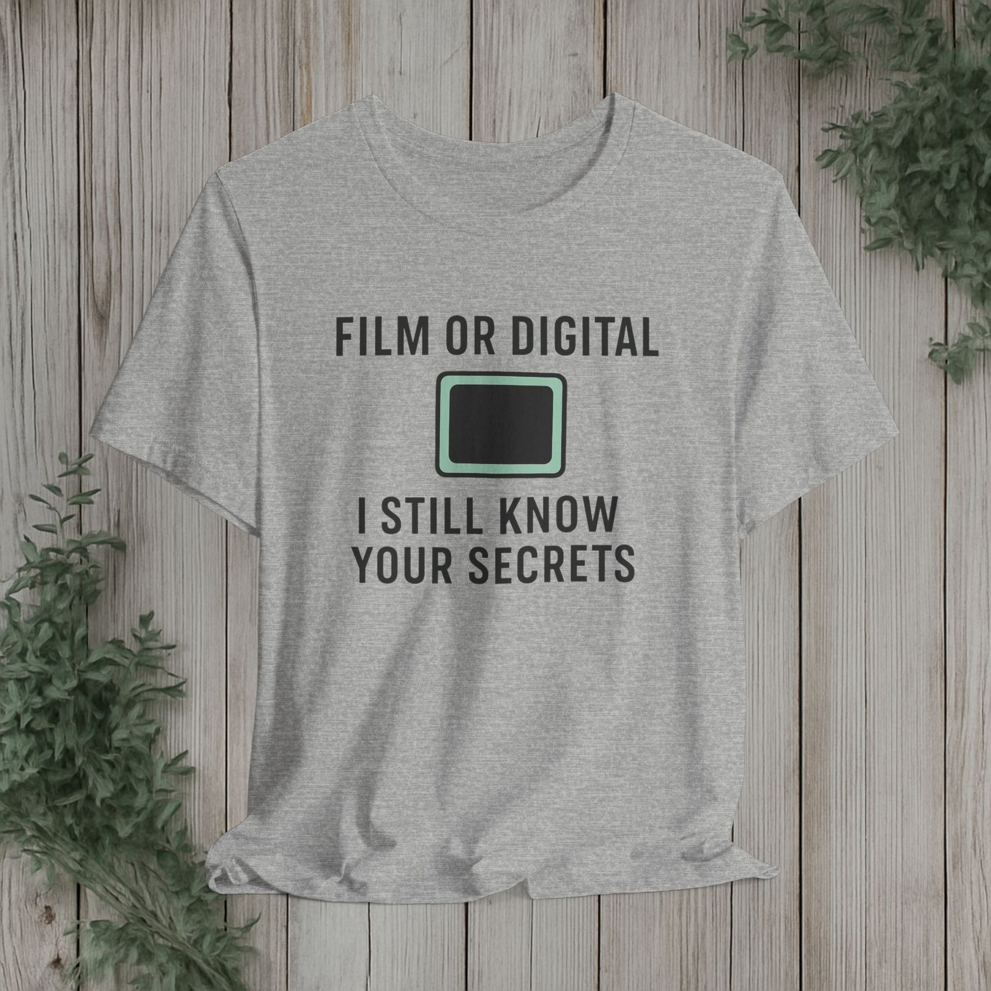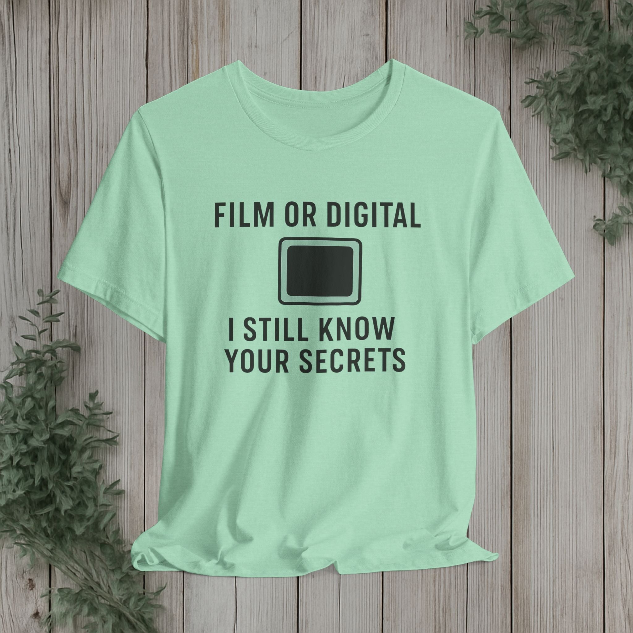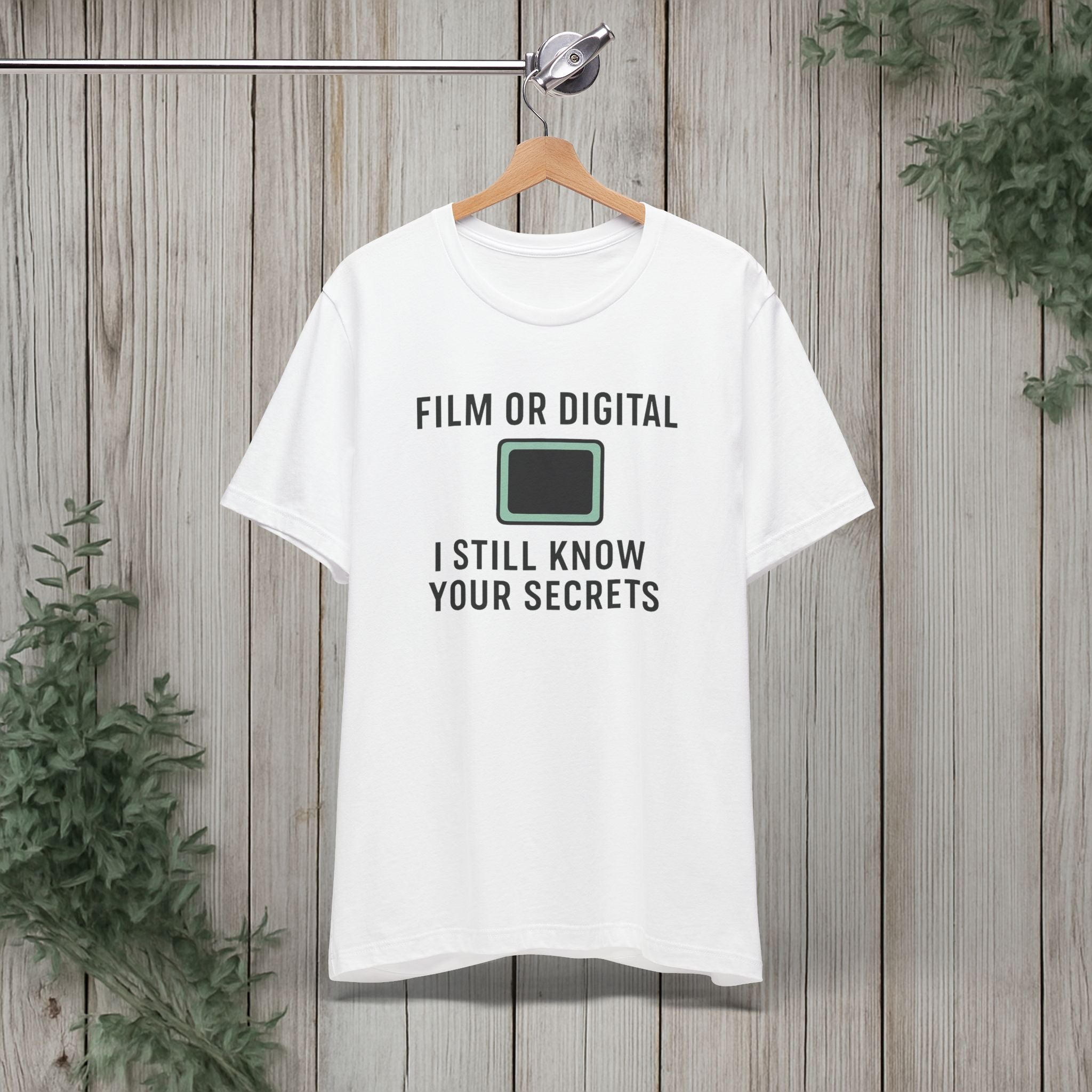 This soft, lightweight tee turns a cheeky photography joke into wearable personality. It wears like a trusted go-to: breathable Airlume cotton, a clean crew neckline, and a retail fit that layers easily under jackets or stands alone. The playful line about “I know your secretes” sits crisp and clear thanks to modern sleeve and label printing methods, so the humor reads from across the room. Built with reinforced side seams and shoulder tape, it keeps its shape wash after wash while the tear-away label keeps the back of your neck comfortable. Slip it on for photo walks, late-night edits, studio banter, or when you want to spark a laugh at the next gallery opening.