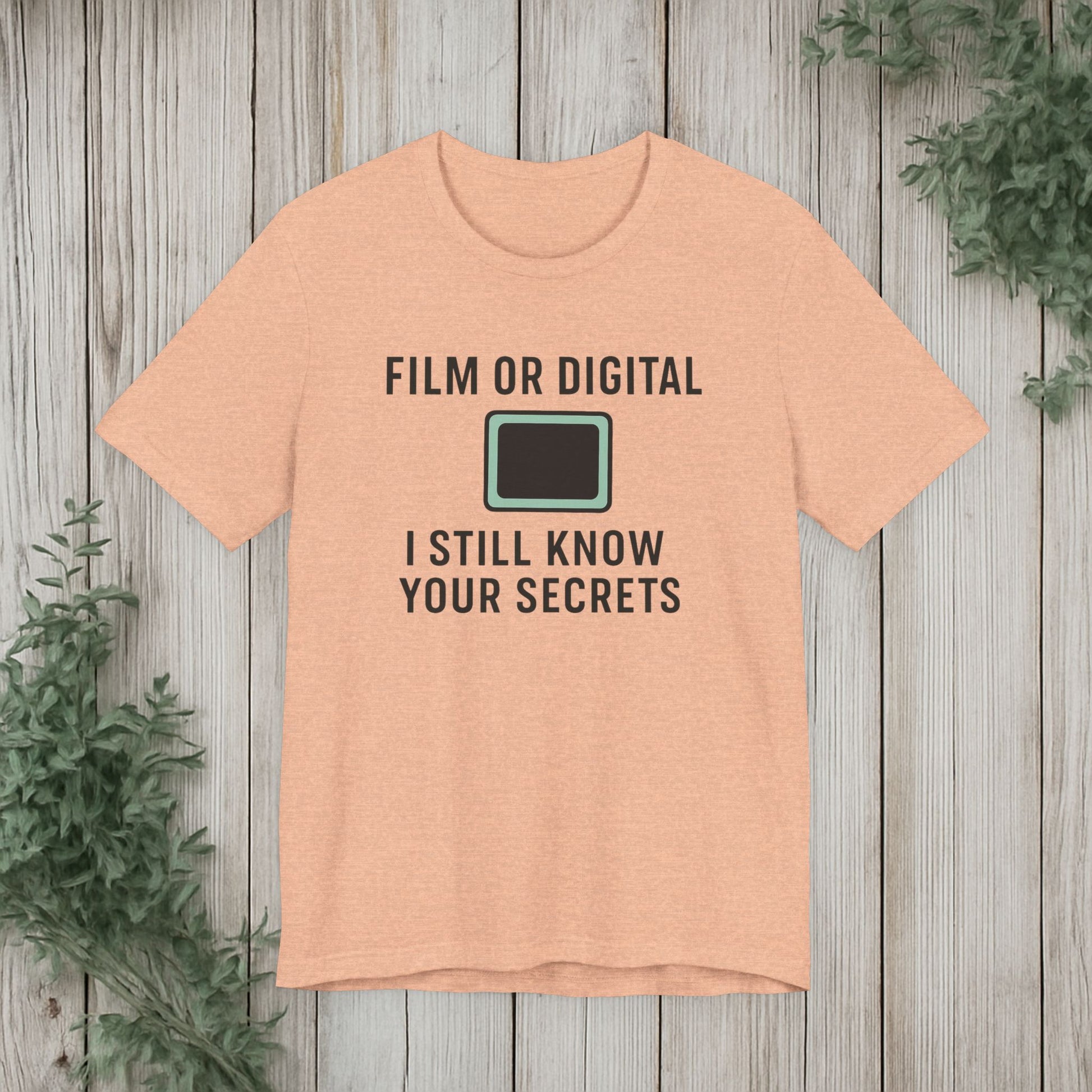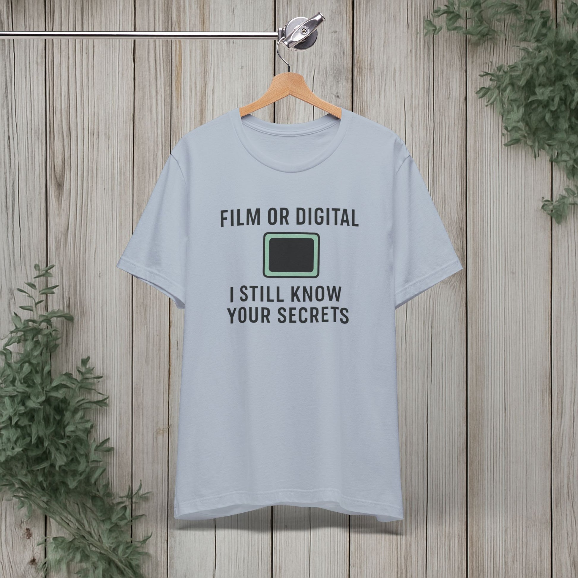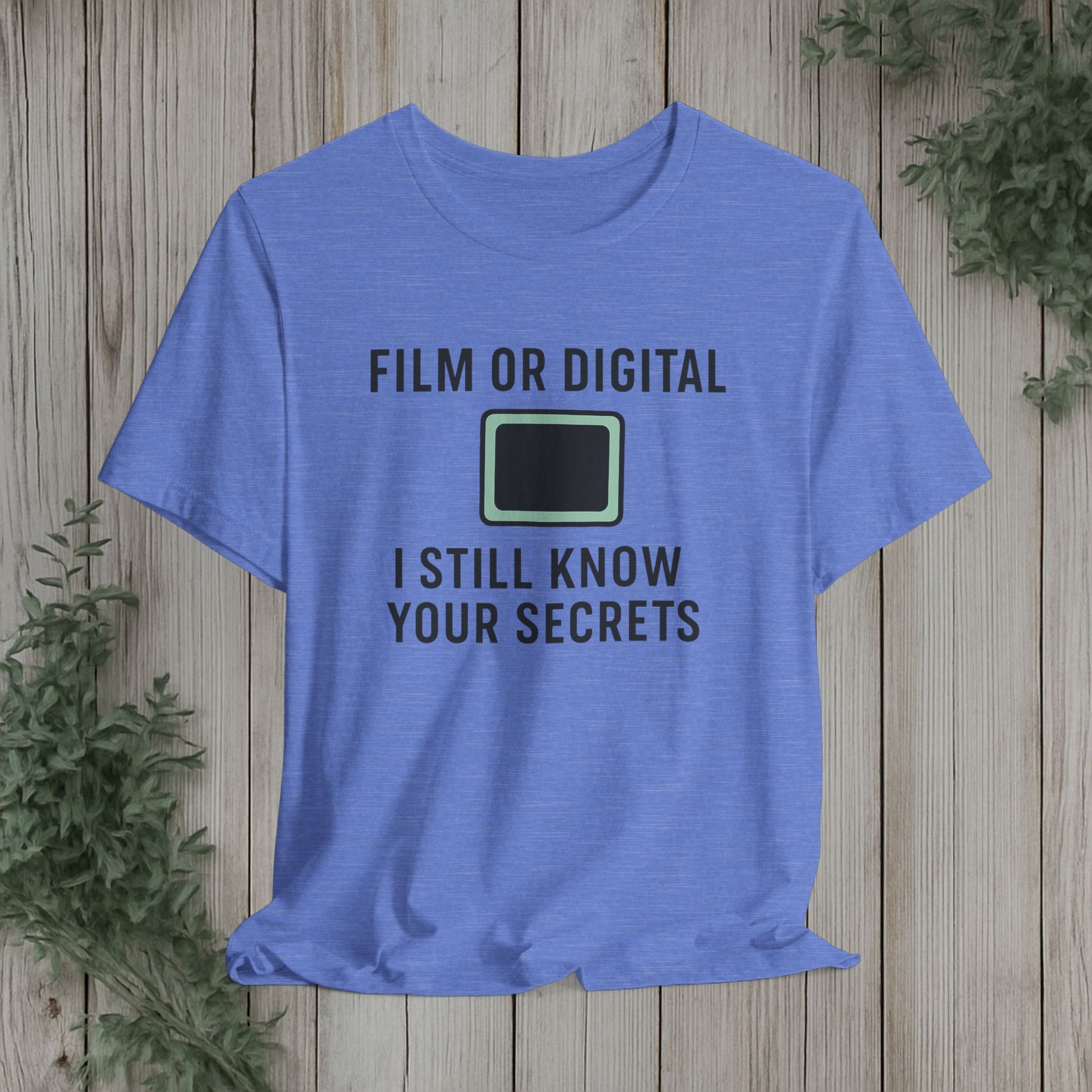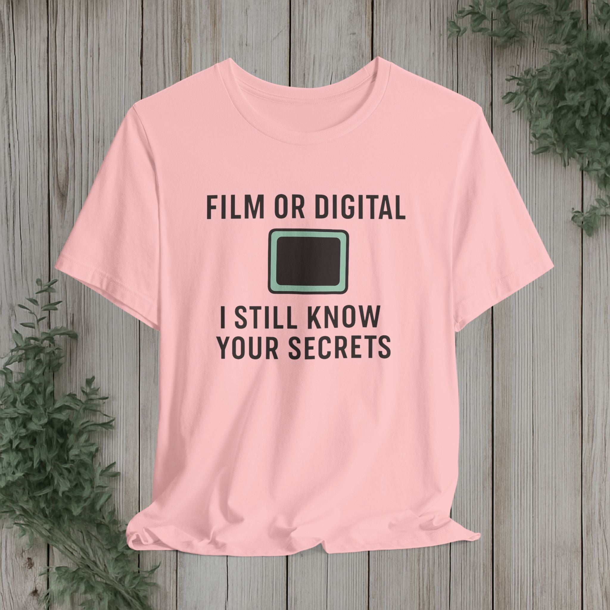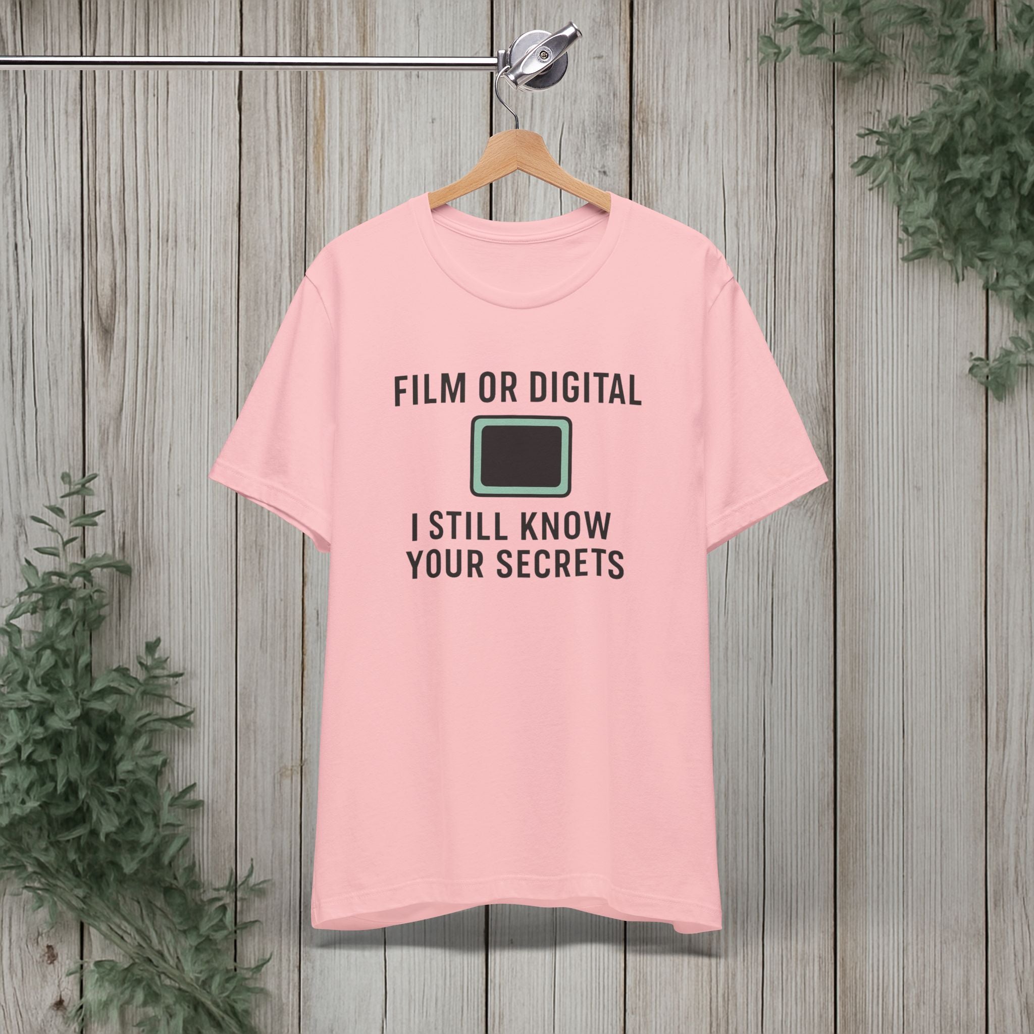 This soft, lightweight tee turns a cheeky photography joke into wearable personality. It wears like a trusted go-to: breathable Airlume cotton, a clean crew neckline, and a retail fit that layers easily under jackets or stands alone. The playful line about “I know your secretes” sits crisp and clear thanks to modern sleeve and label printing methods, so the humor reads from across the room. Built with reinforced side seams and shoulder tape, it keeps its shape wash after wash while the tear-away label keeps the back of your neck comfortable. Slip it on for photo walks, late-night edits, studio banter, or when you want to spark a laugh at the next gallery opening.