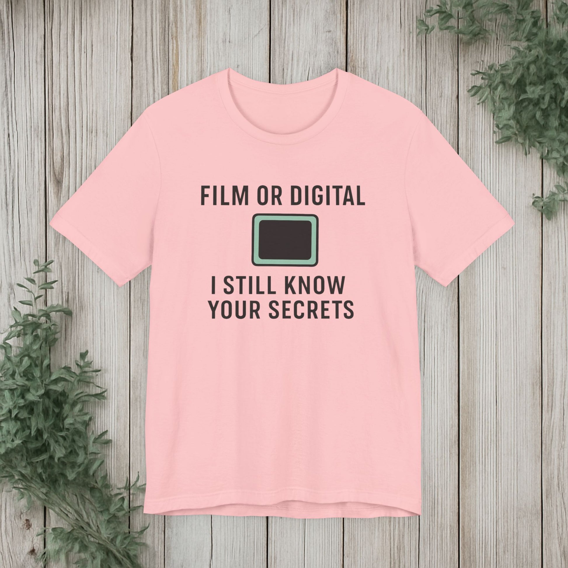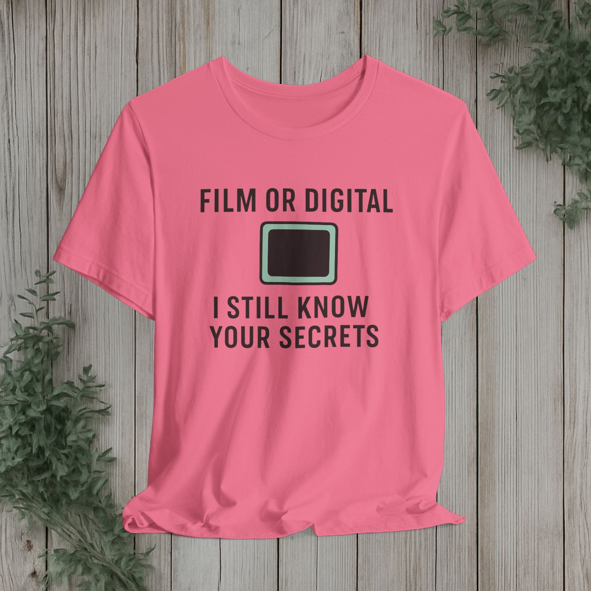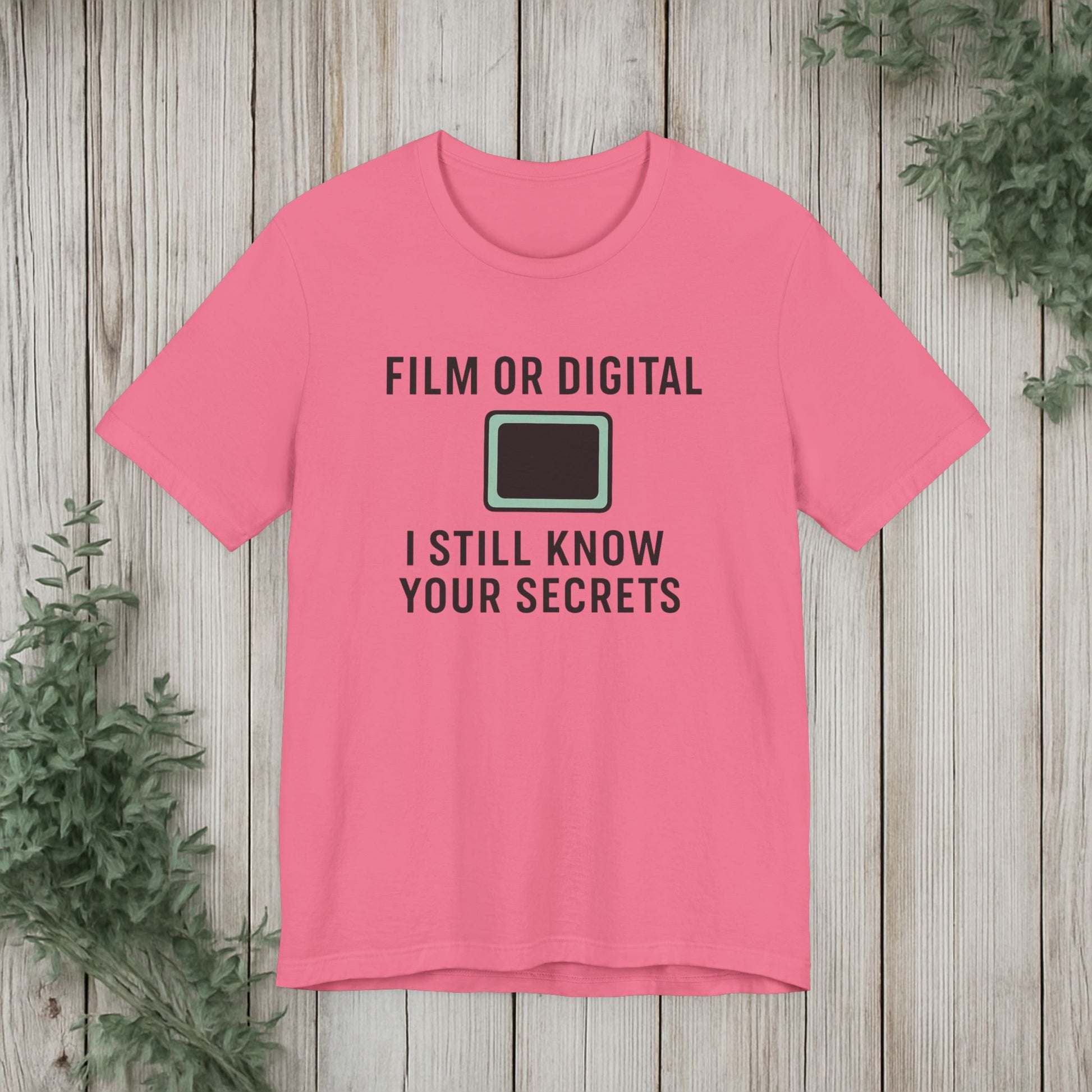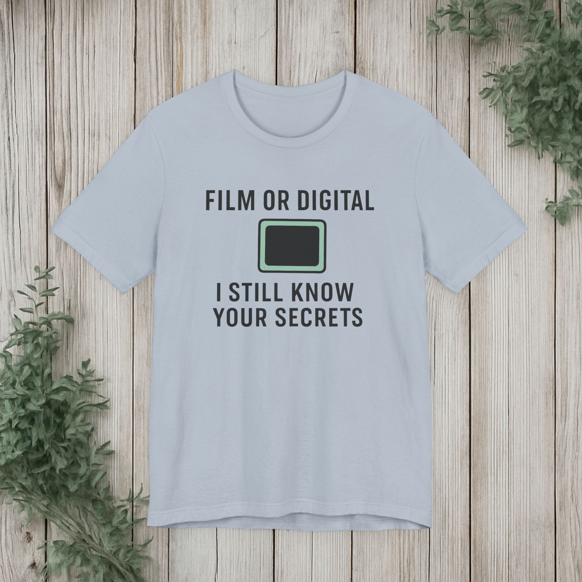 This soft, lightweight tee turns a cheeky photography joke into wearable personality. It wears like a trusted go-to: breathable Airlume cotton, a clean crew neckline, and a retail fit that layers easily under jackets or stands alone. The playful line about “I know your secretes” sits crisp and clear thanks to modern sleeve and label printing methods, so the humor reads from across the room. Built with reinforced side seams and shoulder tape, it keeps its shape wash after wash while the tear-away label keeps the back of your neck comfortable. Slip it on for photo walks, late-night edits, studio banter, or when you want to spark a laugh at the next gallery opening.