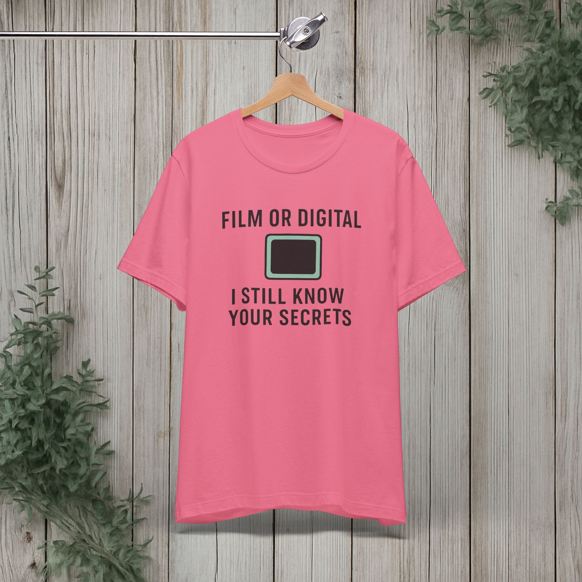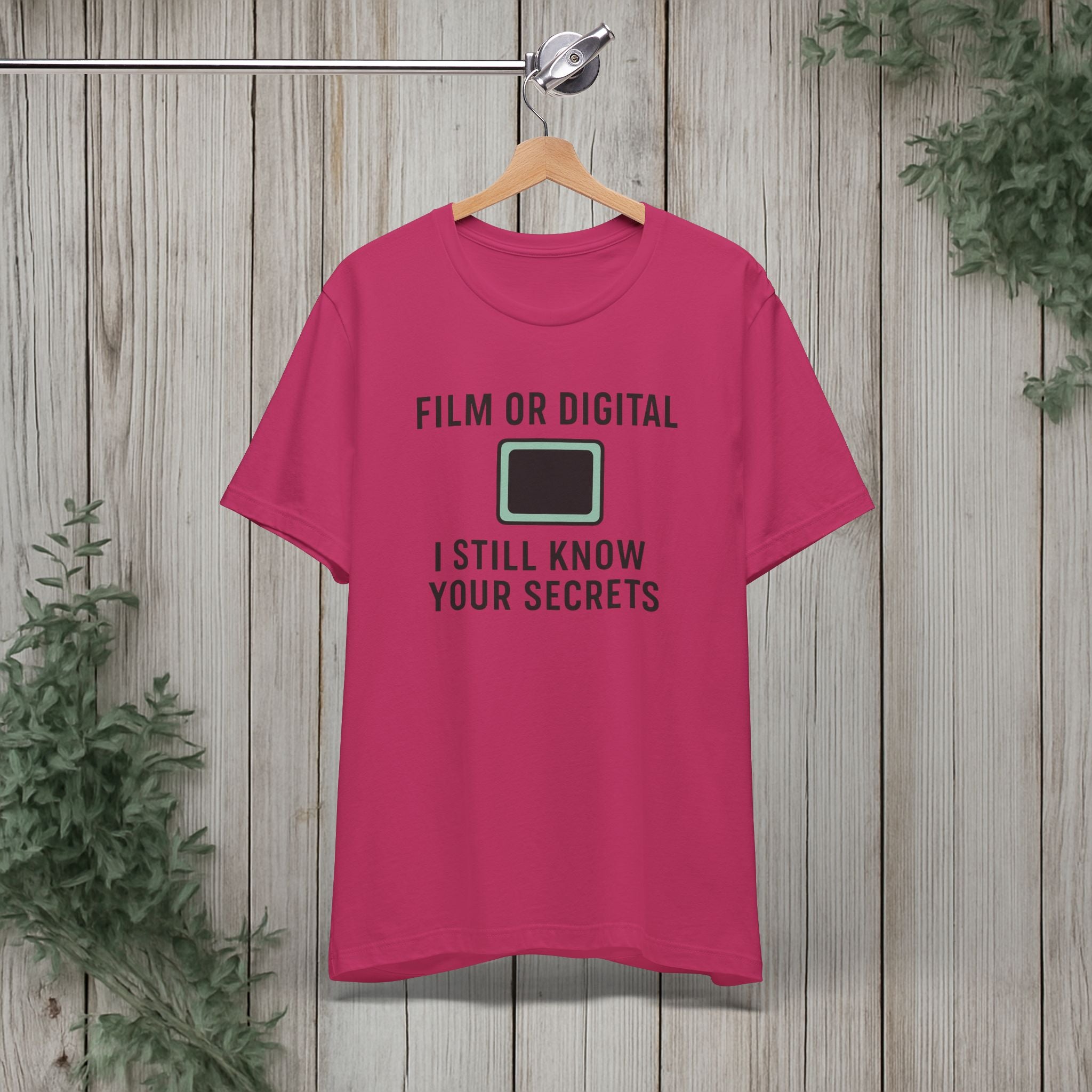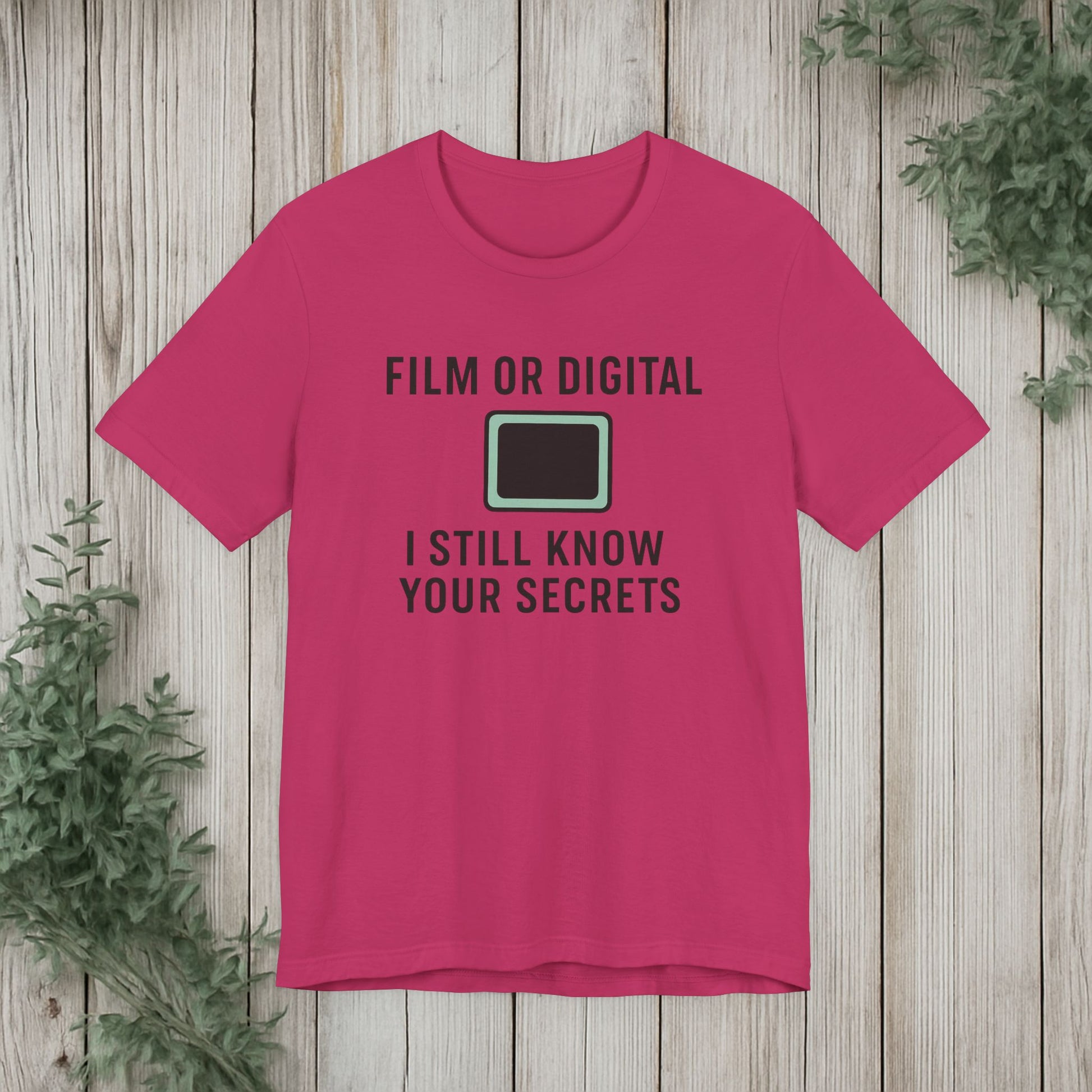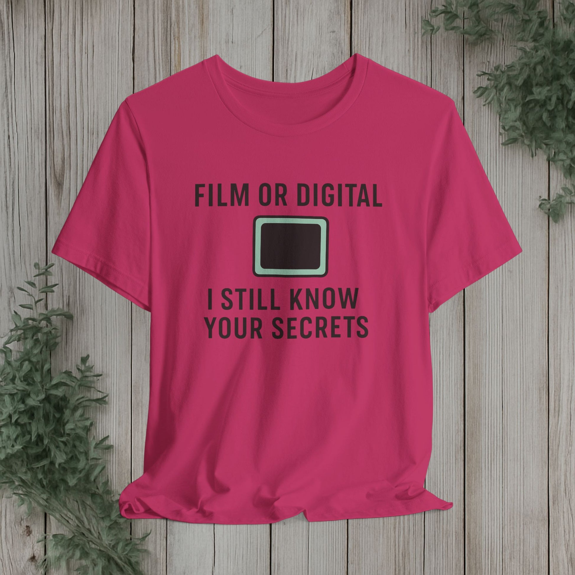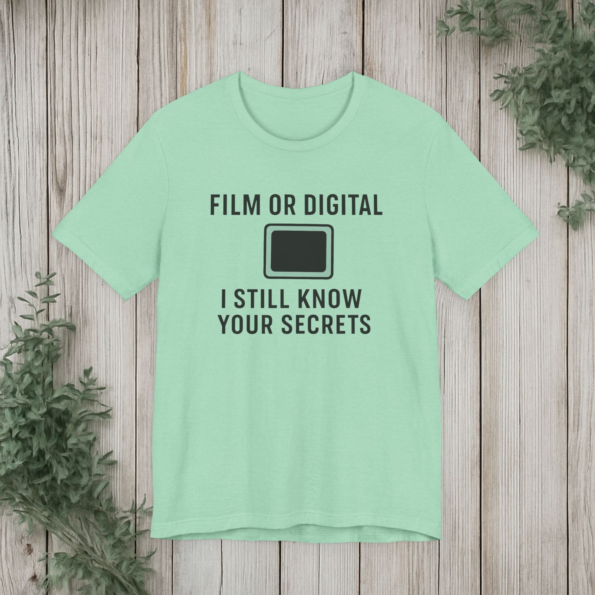 This soft, lightweight tee turns a cheeky photography joke into wearable personality. It wears like a trusted go-to: breathable Airlume cotton, a clean crew neckline, and a retail fit that layers easily under jackets or stands alone. The playful line about “I know your secretes” sits crisp and clear thanks to modern sleeve and label printing methods, so the humor reads from across the room. Built with reinforced side seams and shoulder tape, it keeps its shape wash after wash while the tear-away label keeps the back of your neck comfortable. Slip it on for photo walks, late-night edits, studio banter, or when you want to spark a laugh at the next gallery opening.