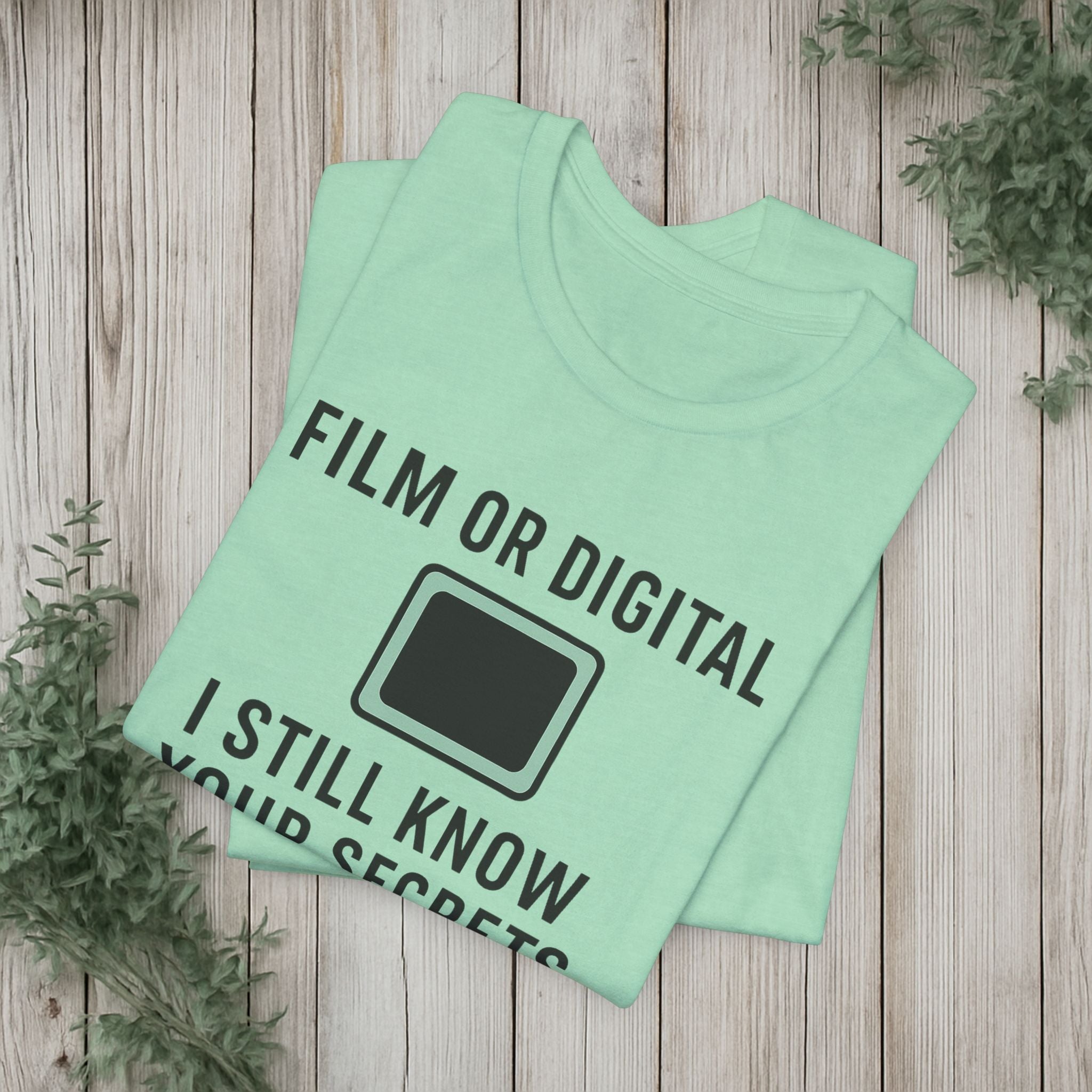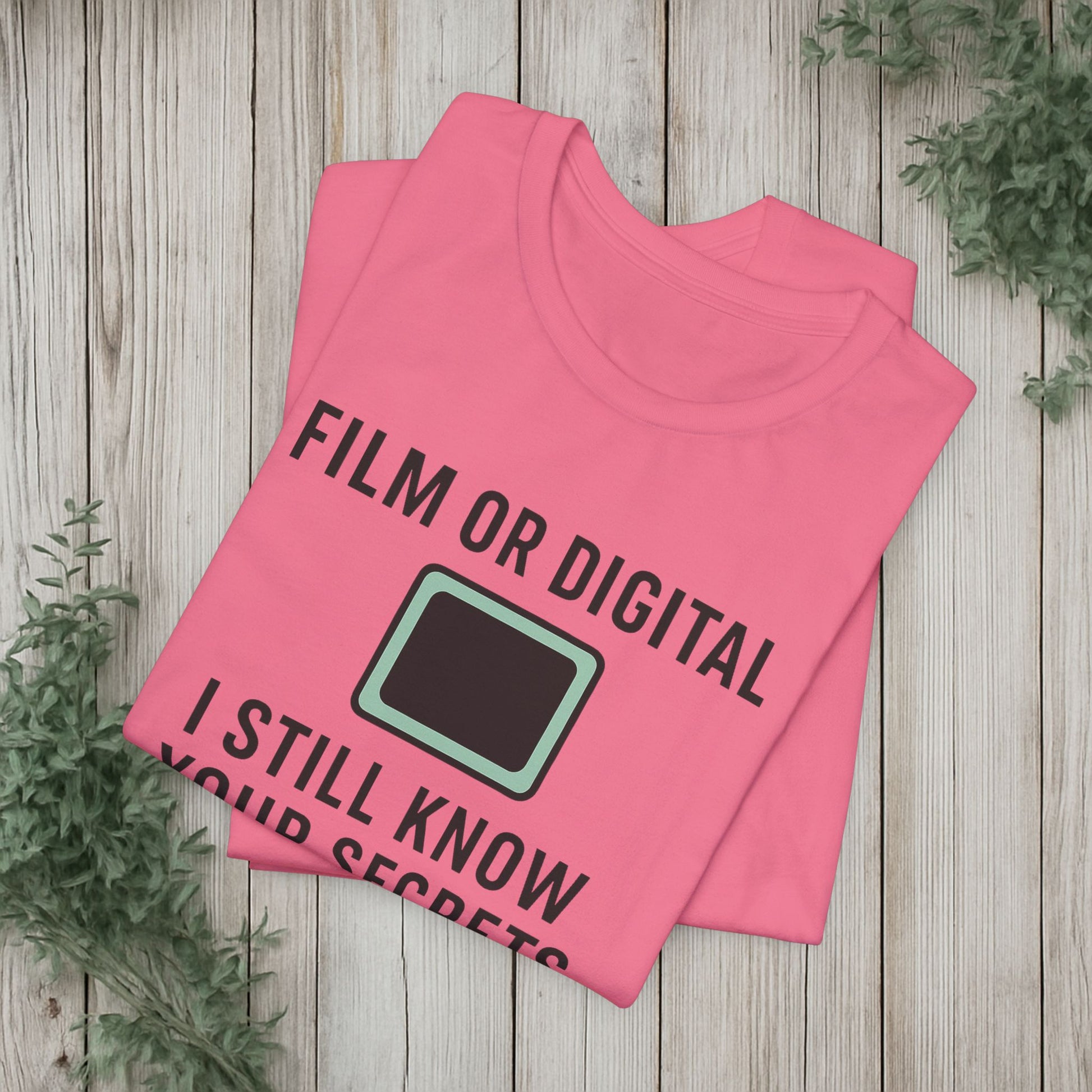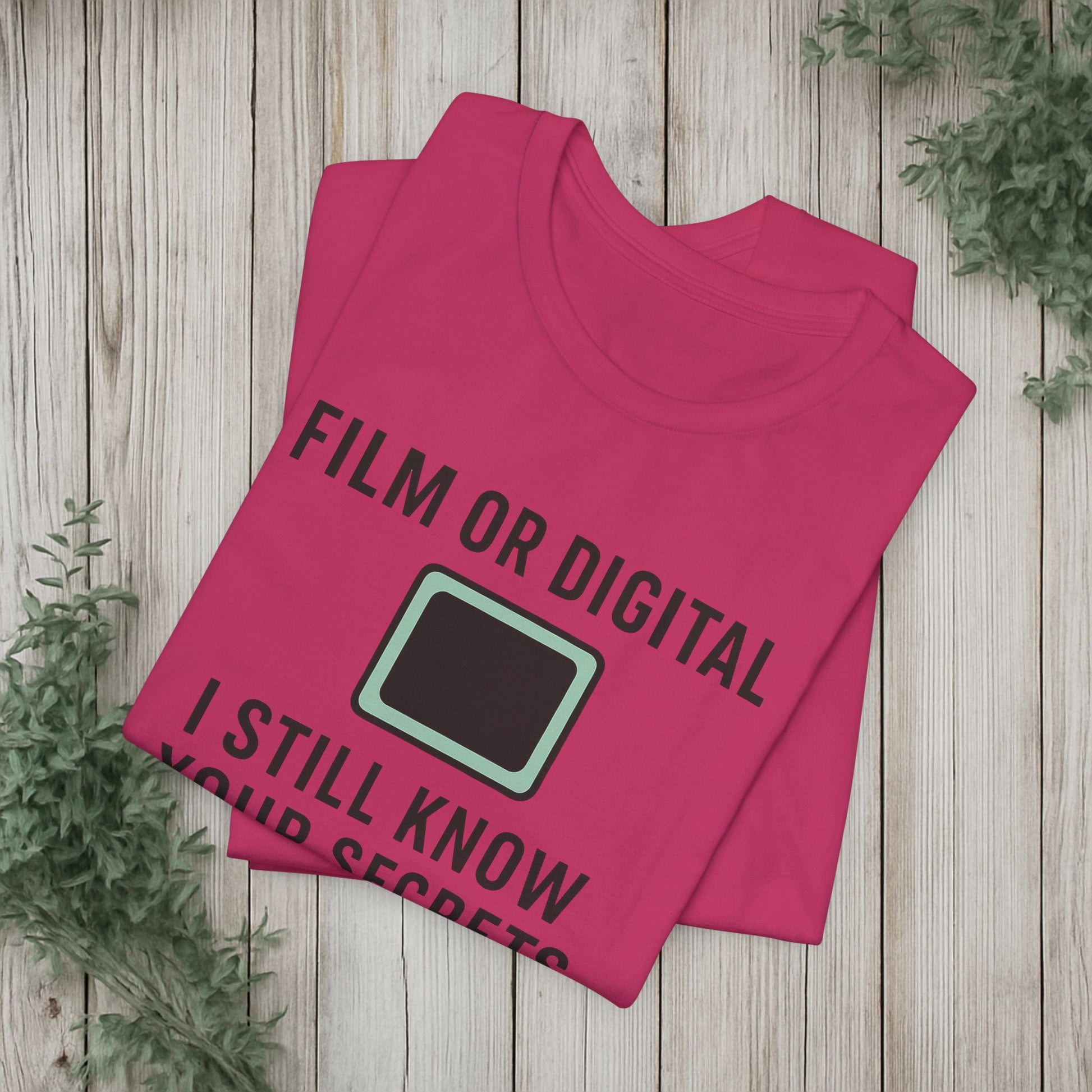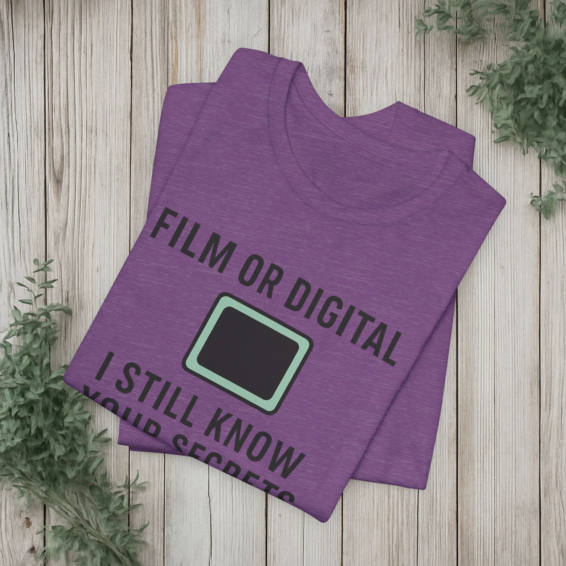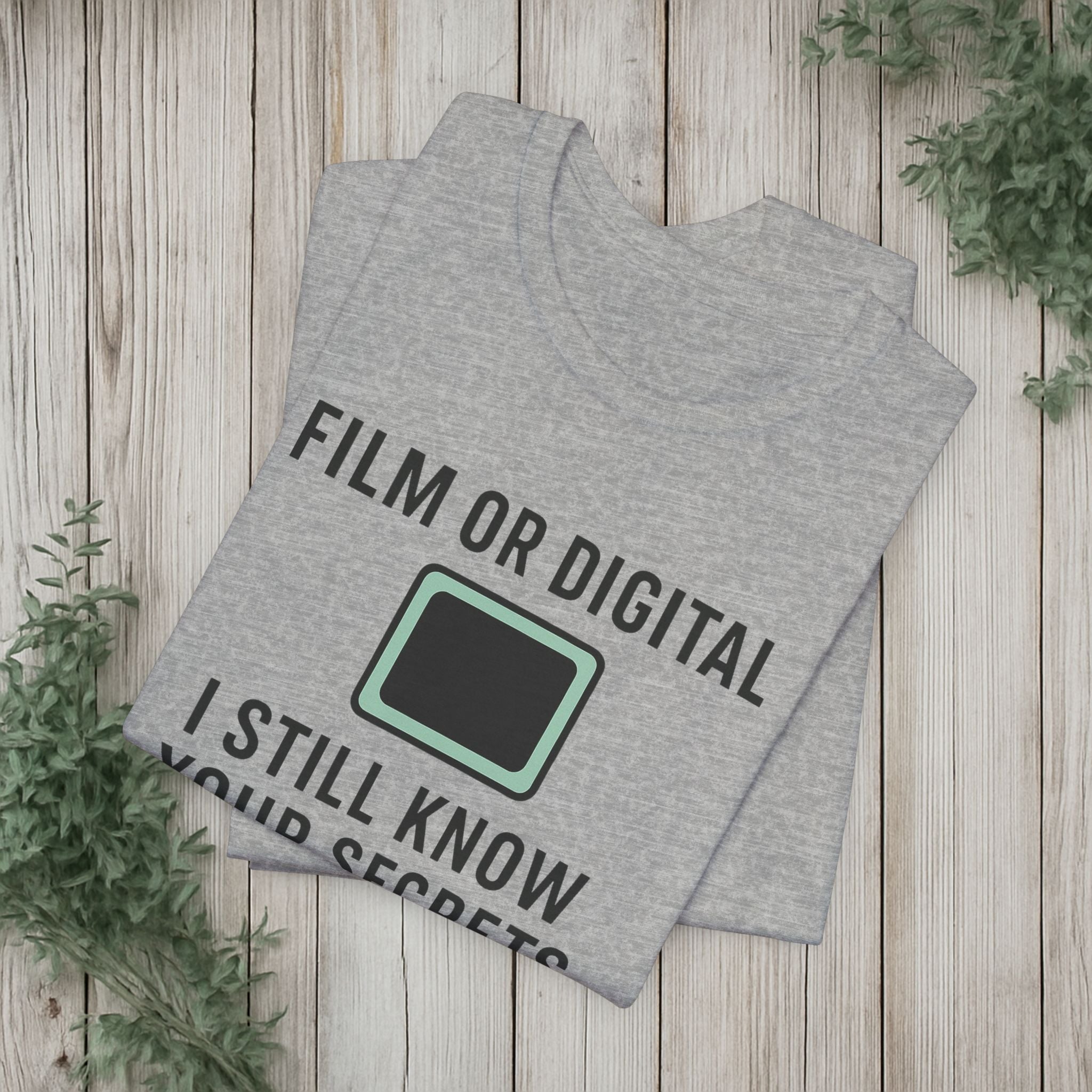 This soft, lightweight tee turns a cheeky photography joke into wearable personality. It wears like a trusted go-to: breathable Airlume cotton, a clean crew neckline, and a retail fit that layers easily under jackets or stands alone. The playful line about “I know your secretes” sits crisp and clear thanks to modern sleeve and label printing methods, so the humor reads from across the room. Built with reinforced side seams and shoulder tape, it keeps its shape wash after wash while the tear-away label keeps the back of your neck comfortable. Slip it on for photo walks, late-night edits, studio banter, or when you want to spark a laugh at the next gallery opening.