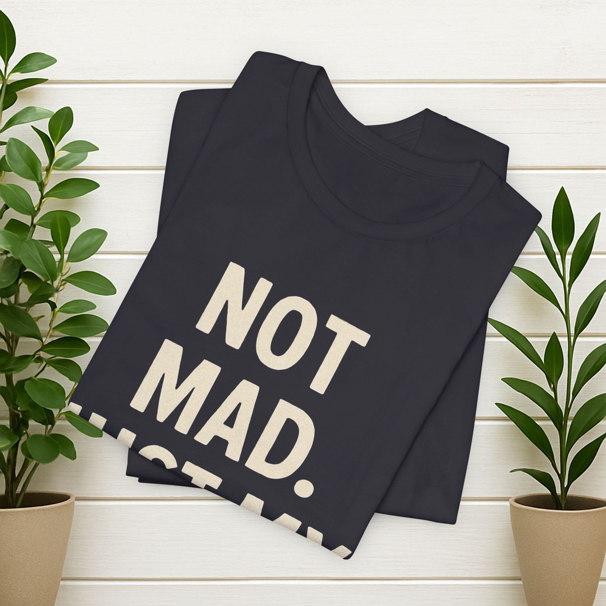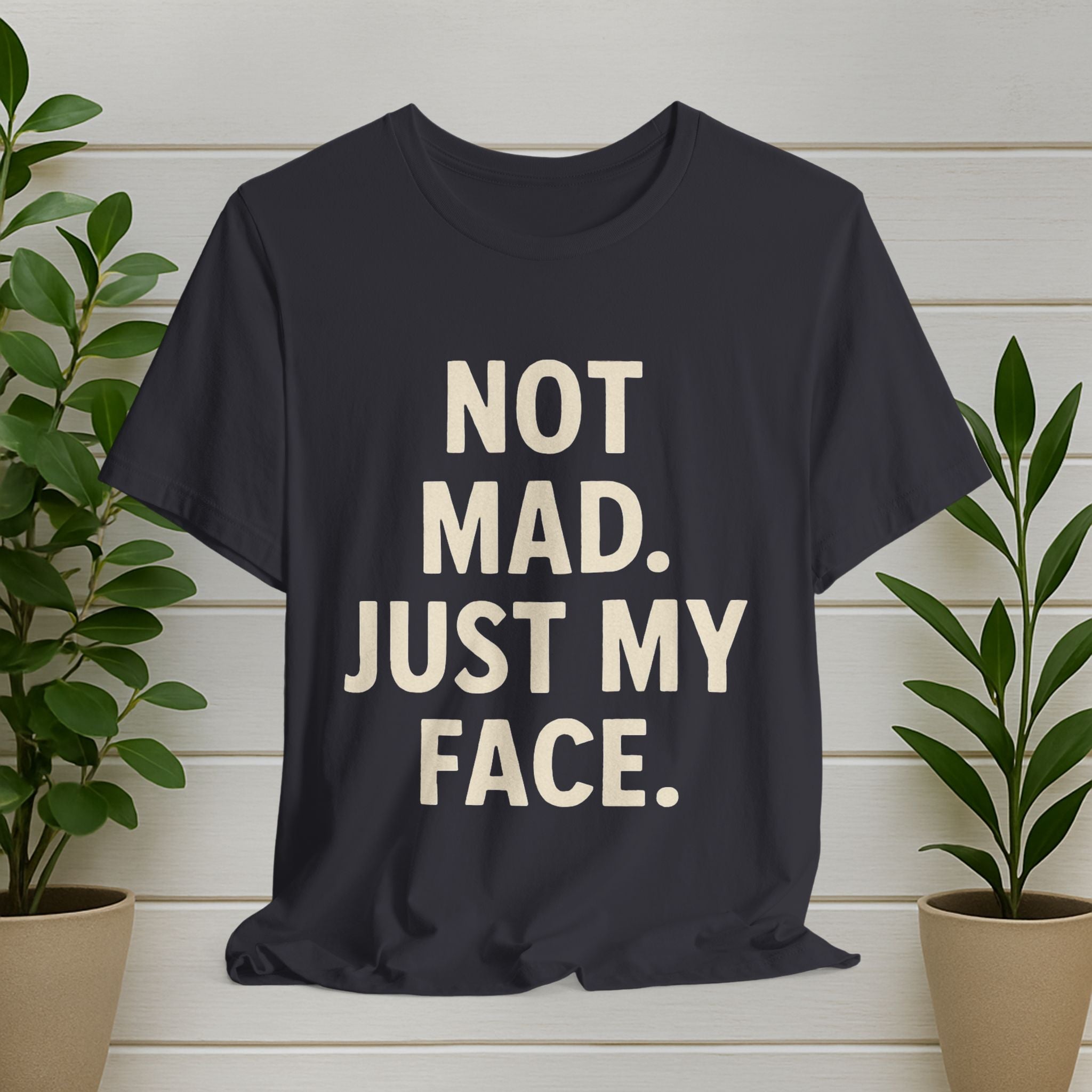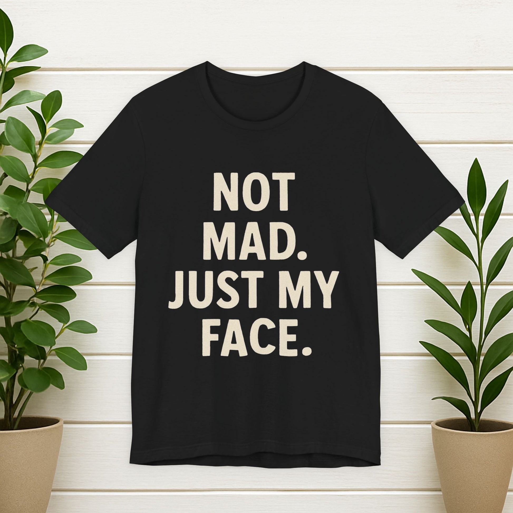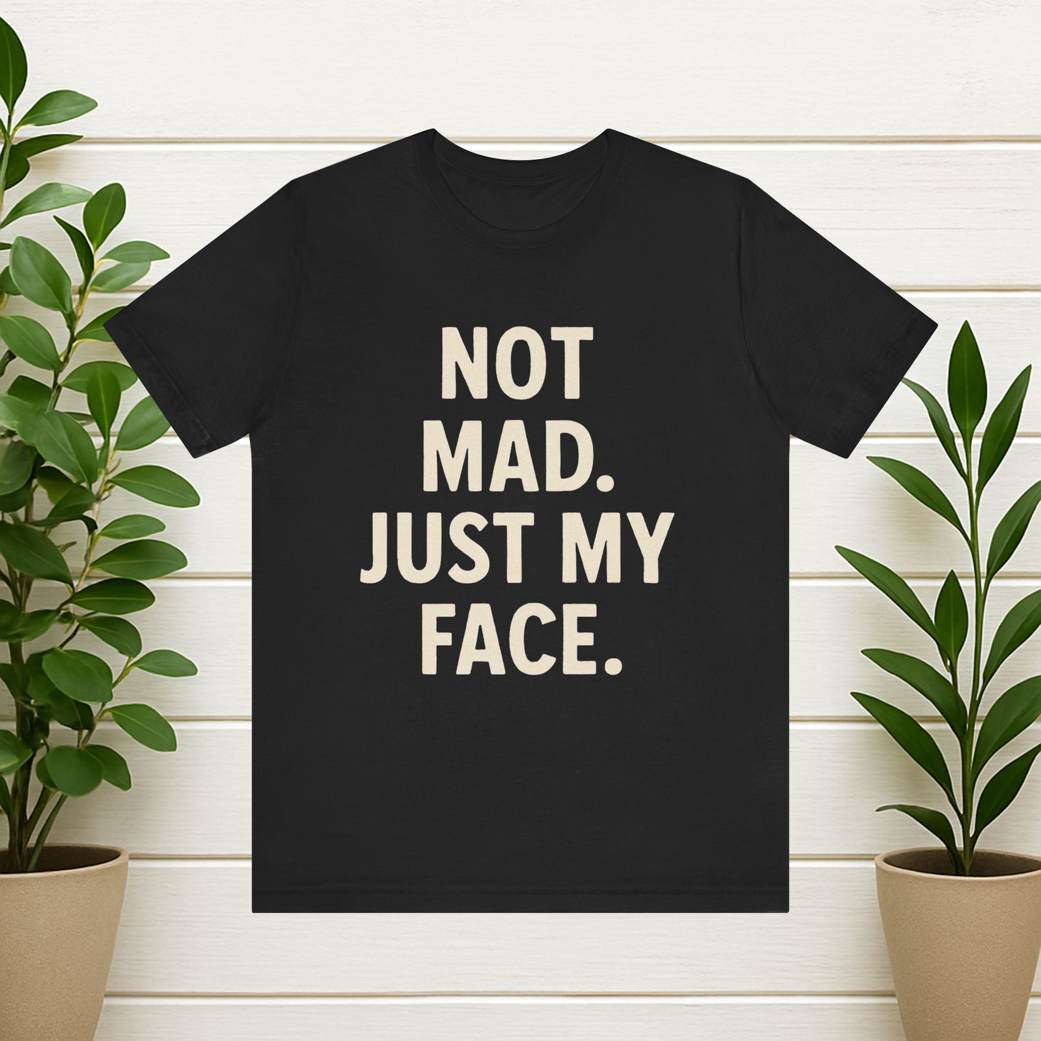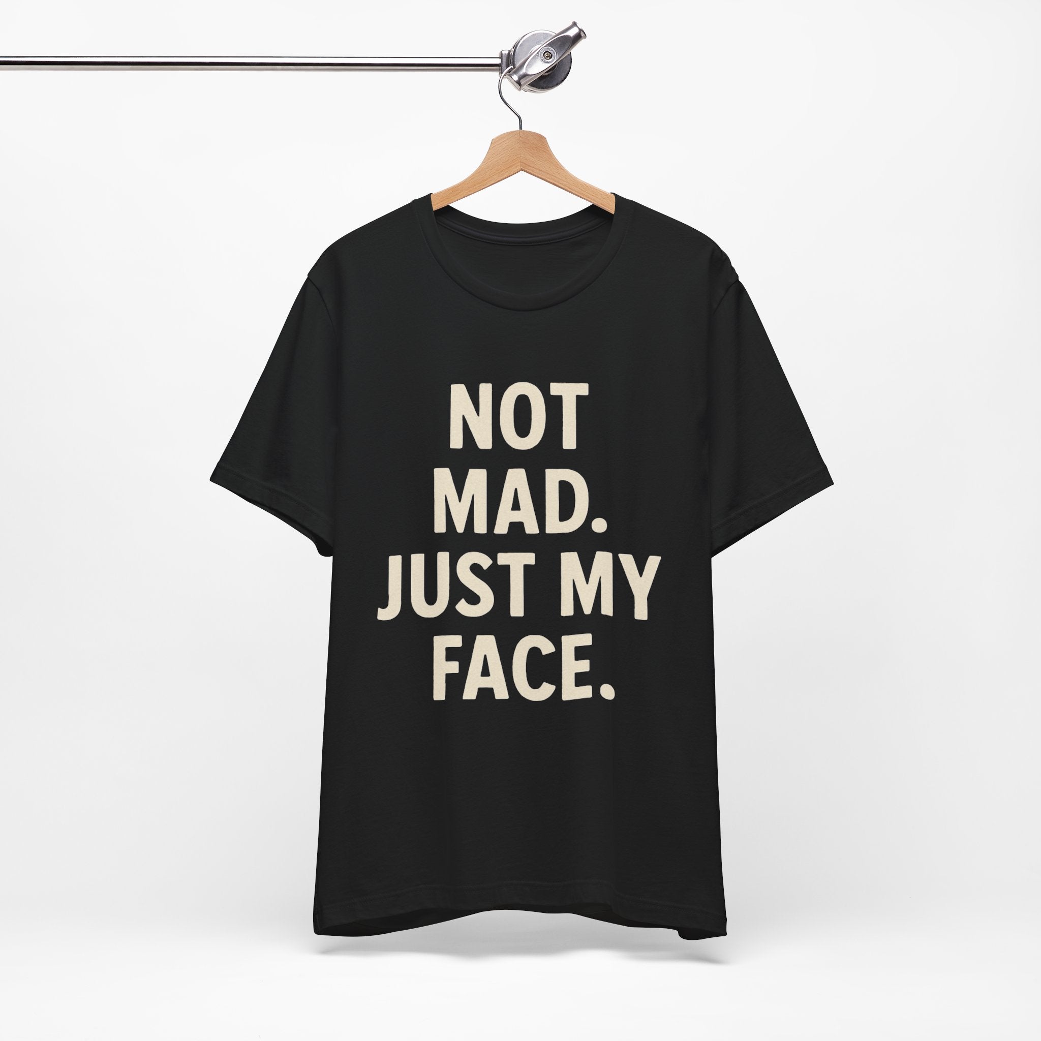 Funny Graphic Tee - "Not Mad. Just My Face." Black Casual T-Shirt