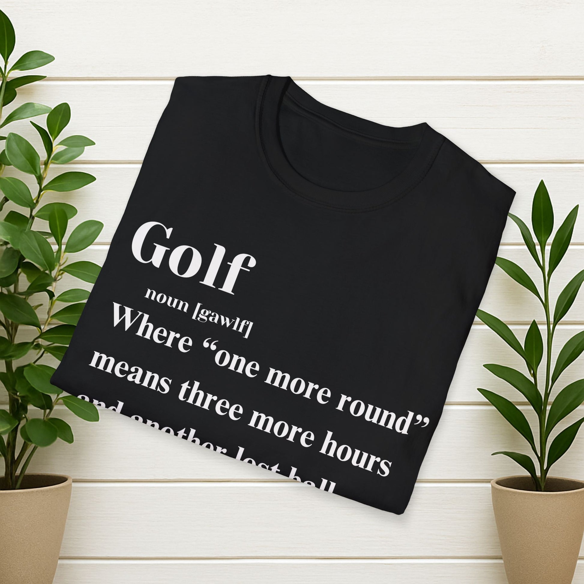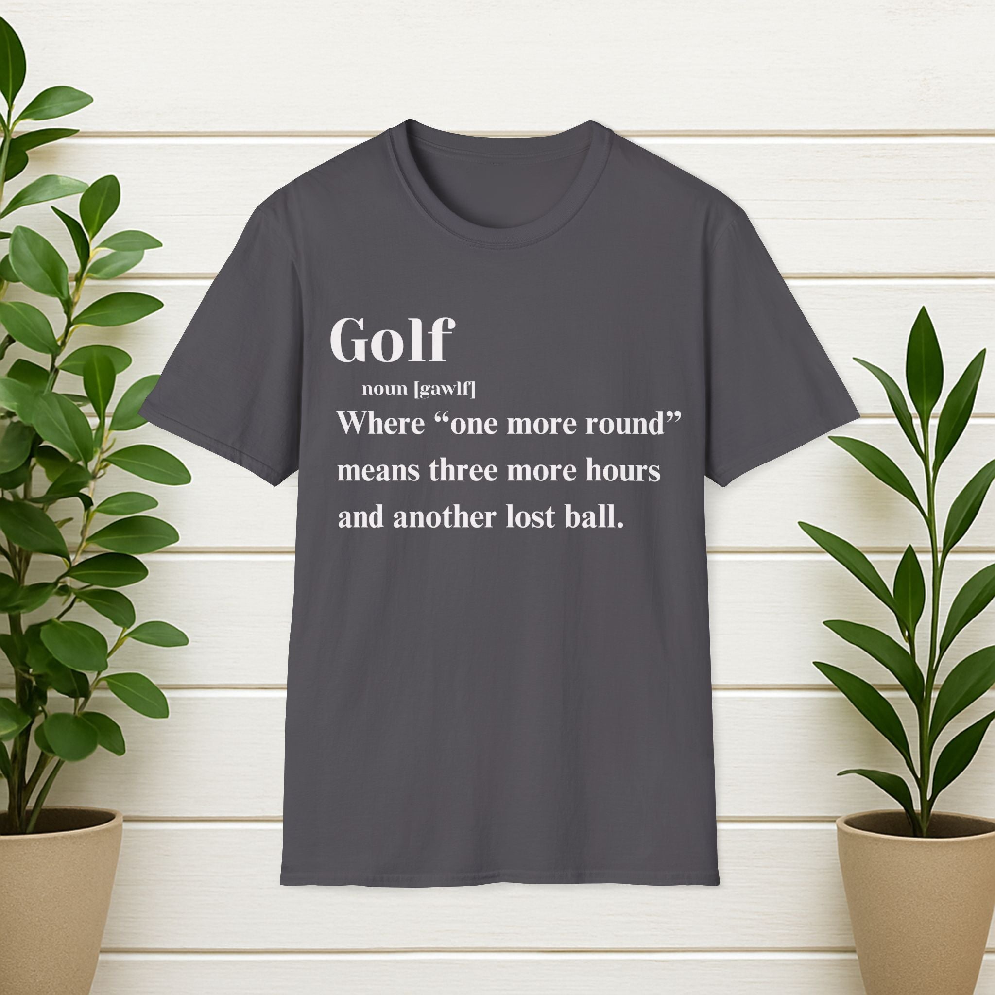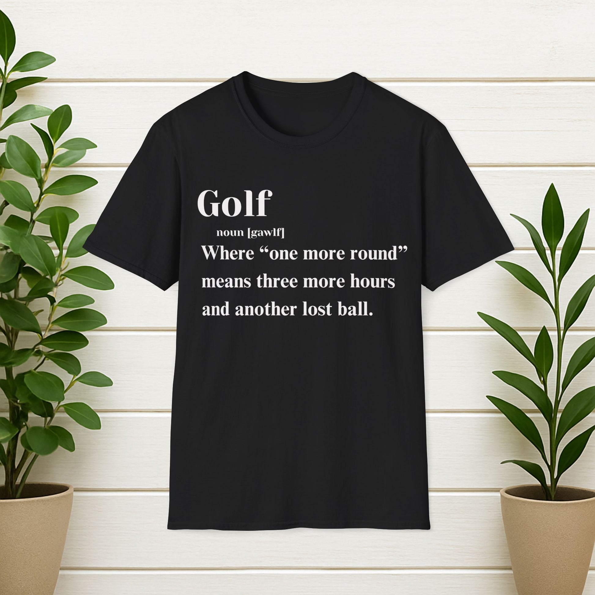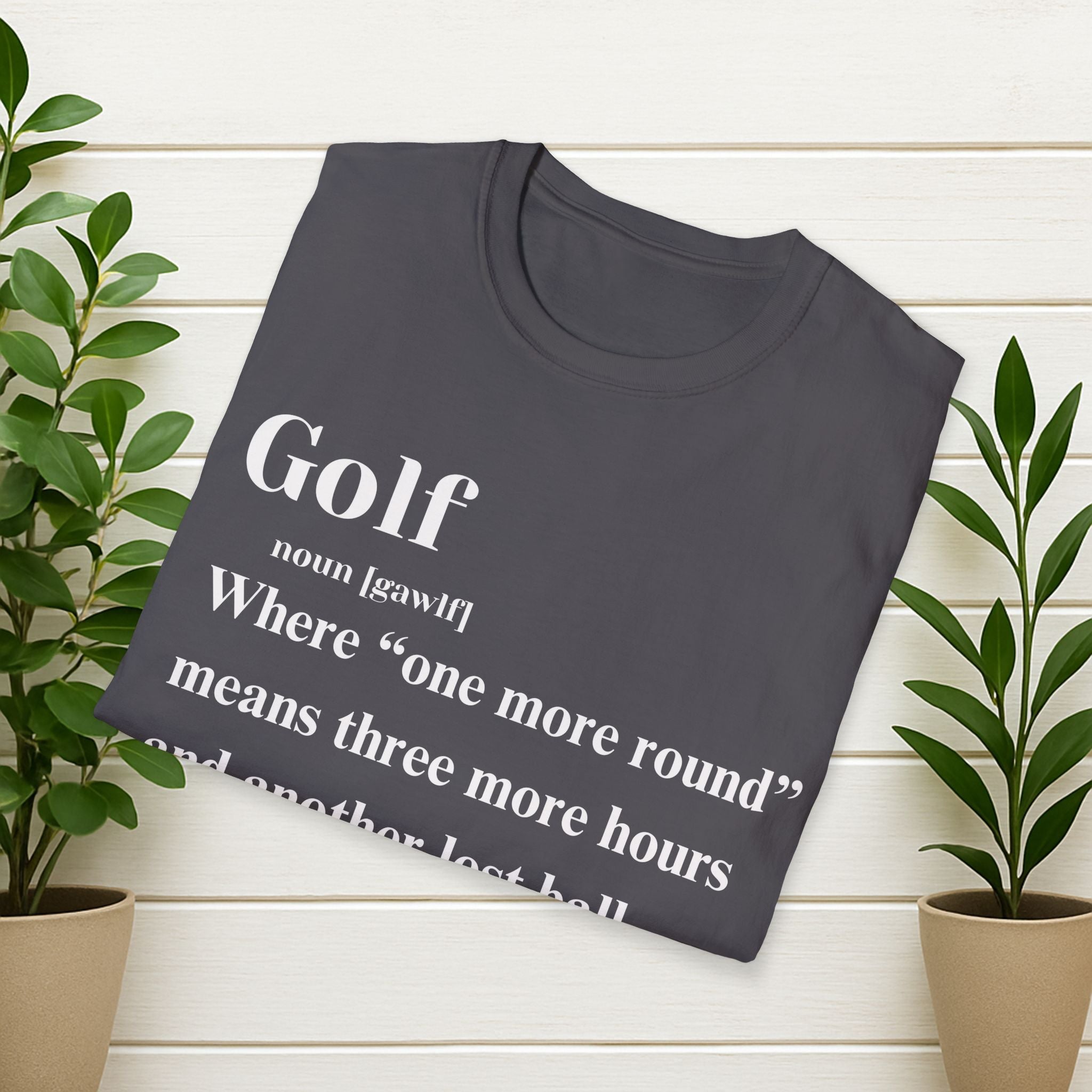 Golf Definition T-Shirt — "Where 'one more round' means three more hours and another lost ball"