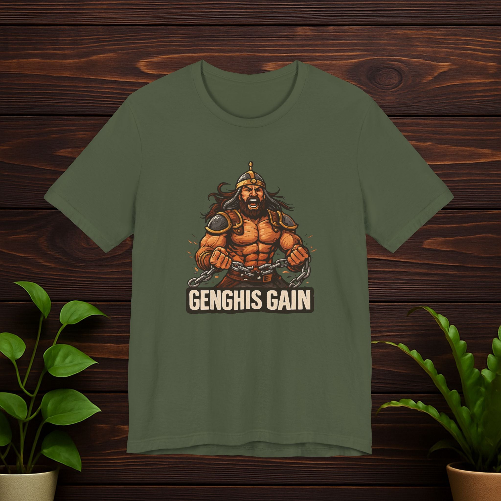 T-Shirt — Genghis Gain Muscular Warrior Gym Tee